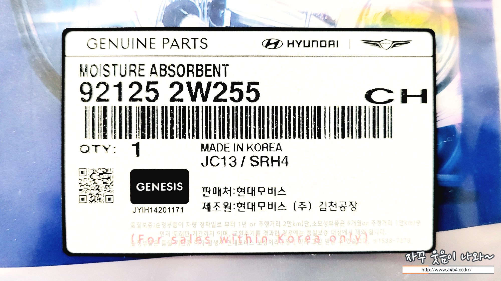 교체용 모이스처 업소번트 구입합니다. 쏘렌토 하이브리드 기준으로 제품 보델번호는 921252W255 입니다. 데시칸 브랜드로 현대모비스를 통해 유통 되는데요. 온라인 쇼핑몰에서 하나에 2,700원 가격에 판매되고 있습니다. 기본 좌우 한 세트에 배송비 포함하면 9천원 중반 가격이 나오네요.