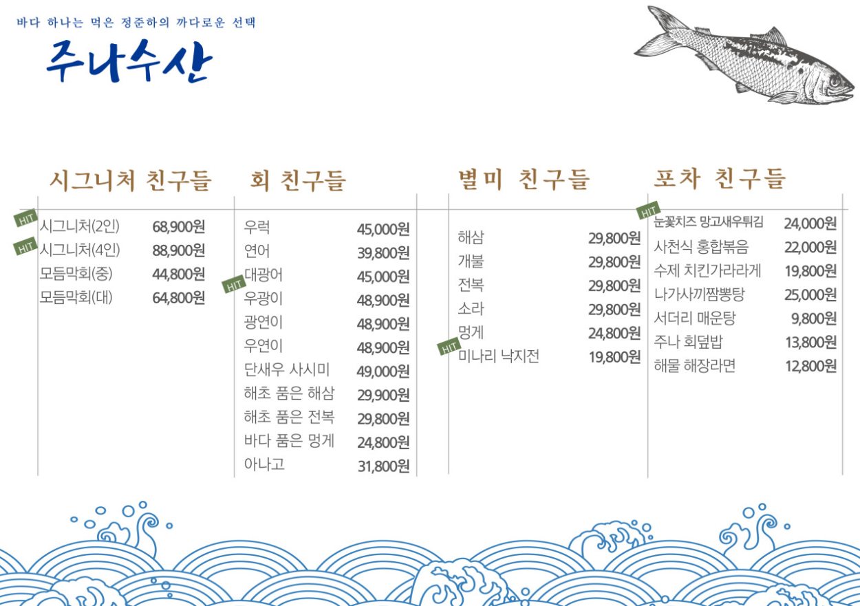 | 주나수산 메뉴 가격