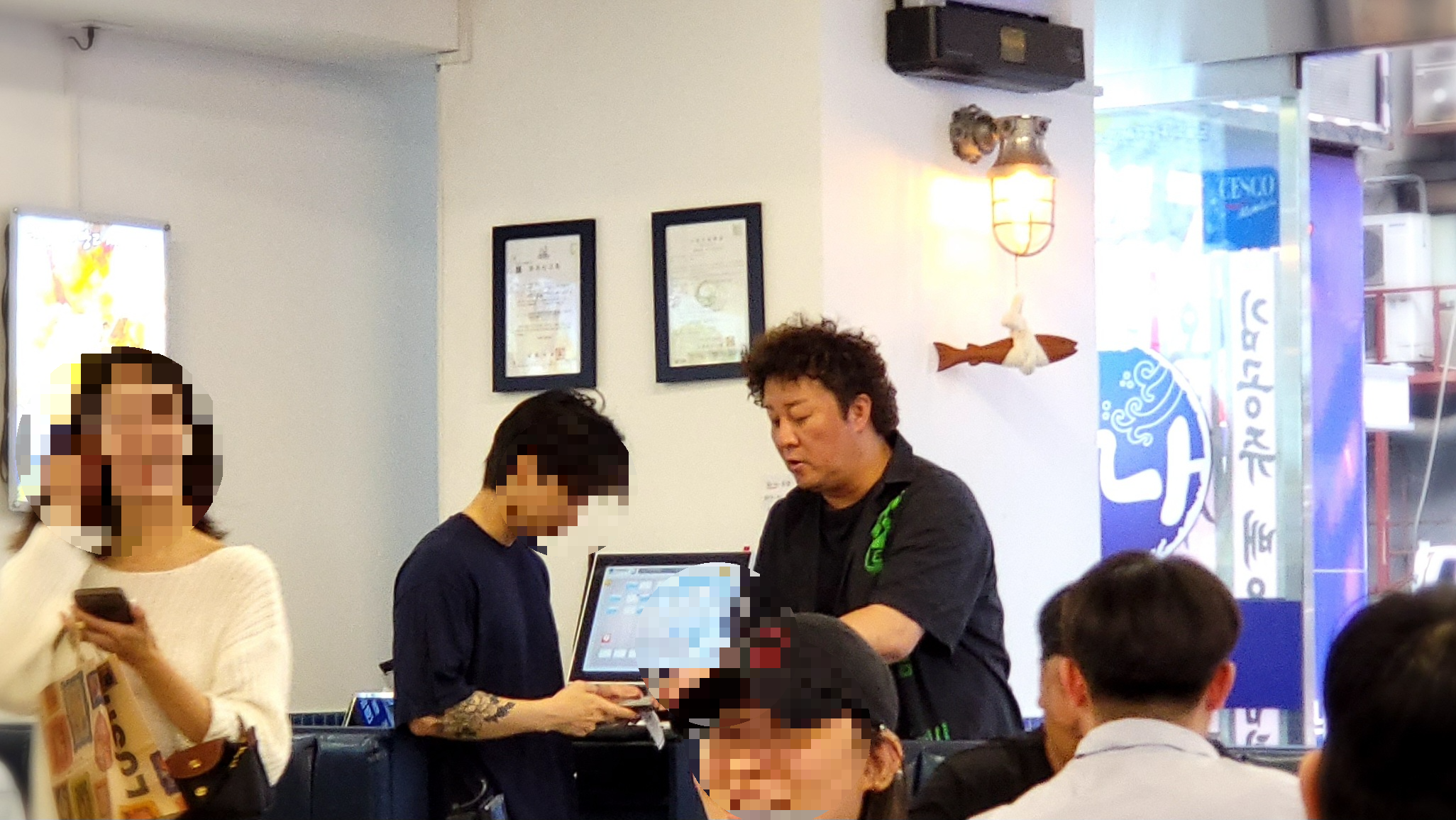 제가 방문한 날에도 주나수산에 정준하씨가 오셨네요. 카운터도 보시고 매장 돌아다니시면서 손님들과 사진 촬영에 응해 주시기도 합니다. 엄청난 덩치와 지친 모습이... 피곤해 보이시더라는...