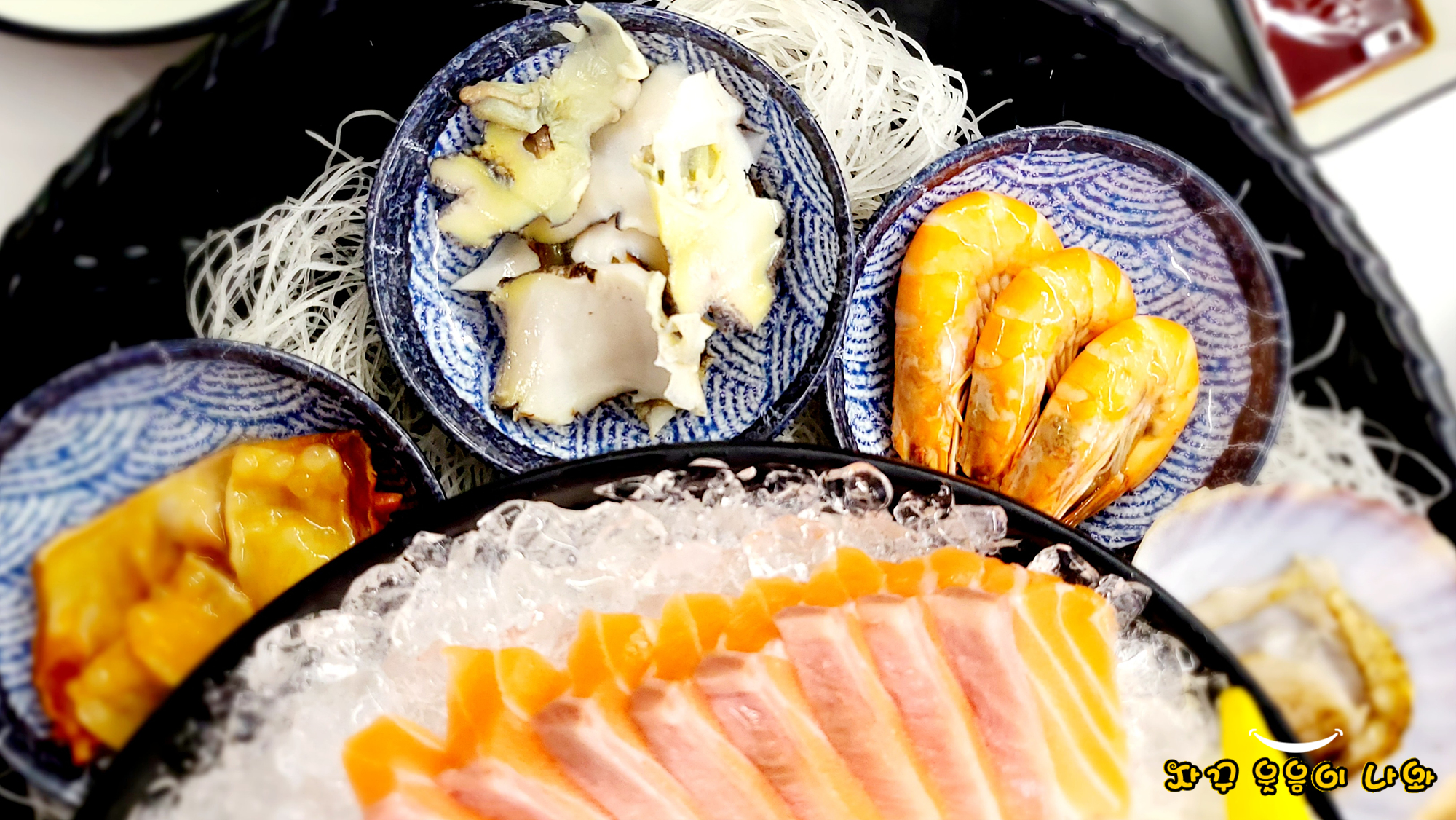 회는 연어 광어 도미 우럭이 나오네요. 우선 회는 만점 드립니다. 신선하고 식감좋고 비린 맛 전혀 없네요. 또한 작은 얼음위에 올려나와 시원함과 쫄깃함이 잘 유지되네요. (무나, 천사채 위에 올리는 것 극혐해서요.)