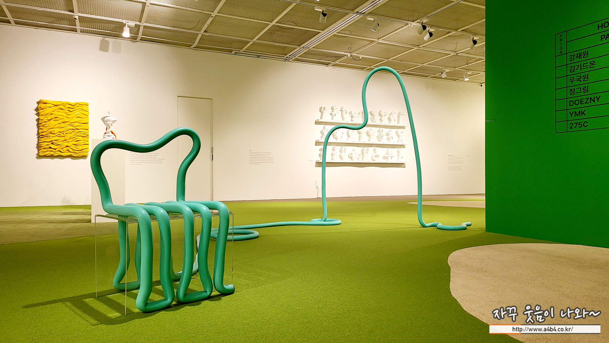 에비뉴엘 아트홀에서 열리고 있는 '모두의 트로피: 영광의 순간'에 전시된 김기드온 작가의 작품들, 앉아봐도 될까요?