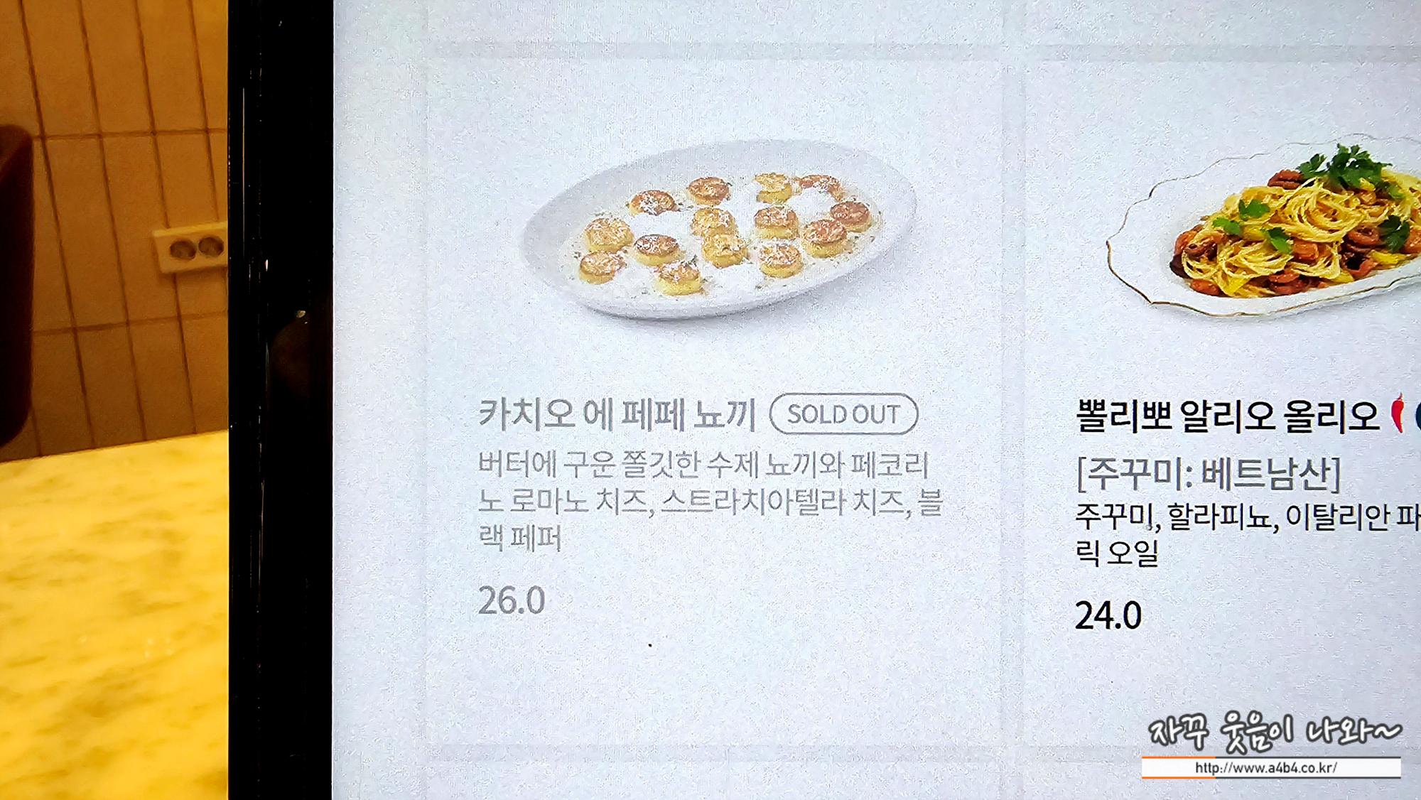 얼마전 광야에서 뇨끼를 처음먹고 반해버린 딸아이가 이곳 더플레이스에서도 노리고 방문한 메뉴인 카치오 에 페페 뇨끼 까지 Sold Out 네요. 과연 평소에도 이렇게 일찍 품절되는 메뉴인지 궁금합니다.