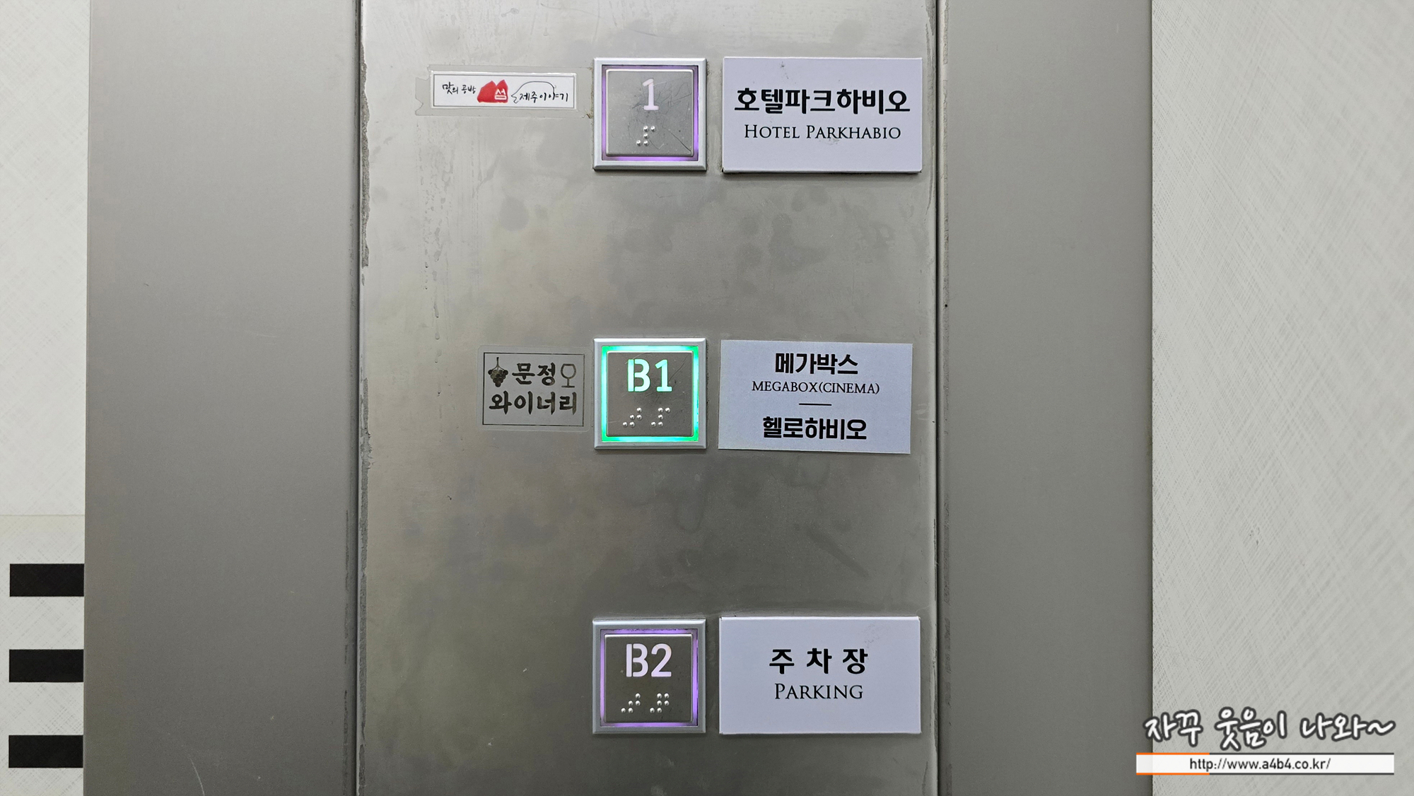 지하 1층 메가박스 영화관과 1층 호텔 파크하비오, 2층 웨딩 컨벤션홀로 이동하기 편한 곳입니다.