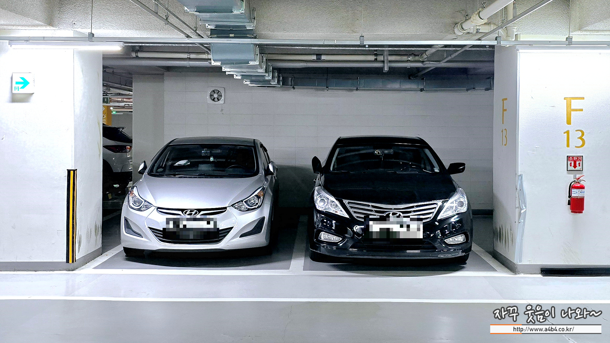 파크하비오 주차장은 지하 2층에 위치해 있는데요. 진입에 큰 어려움은 없습니다. 커브와 경사가 있지만 주차장 진출입로가 좁지 않아서 초보운전자 분들고 큰 어려움 없이 주차가 가능합니다.