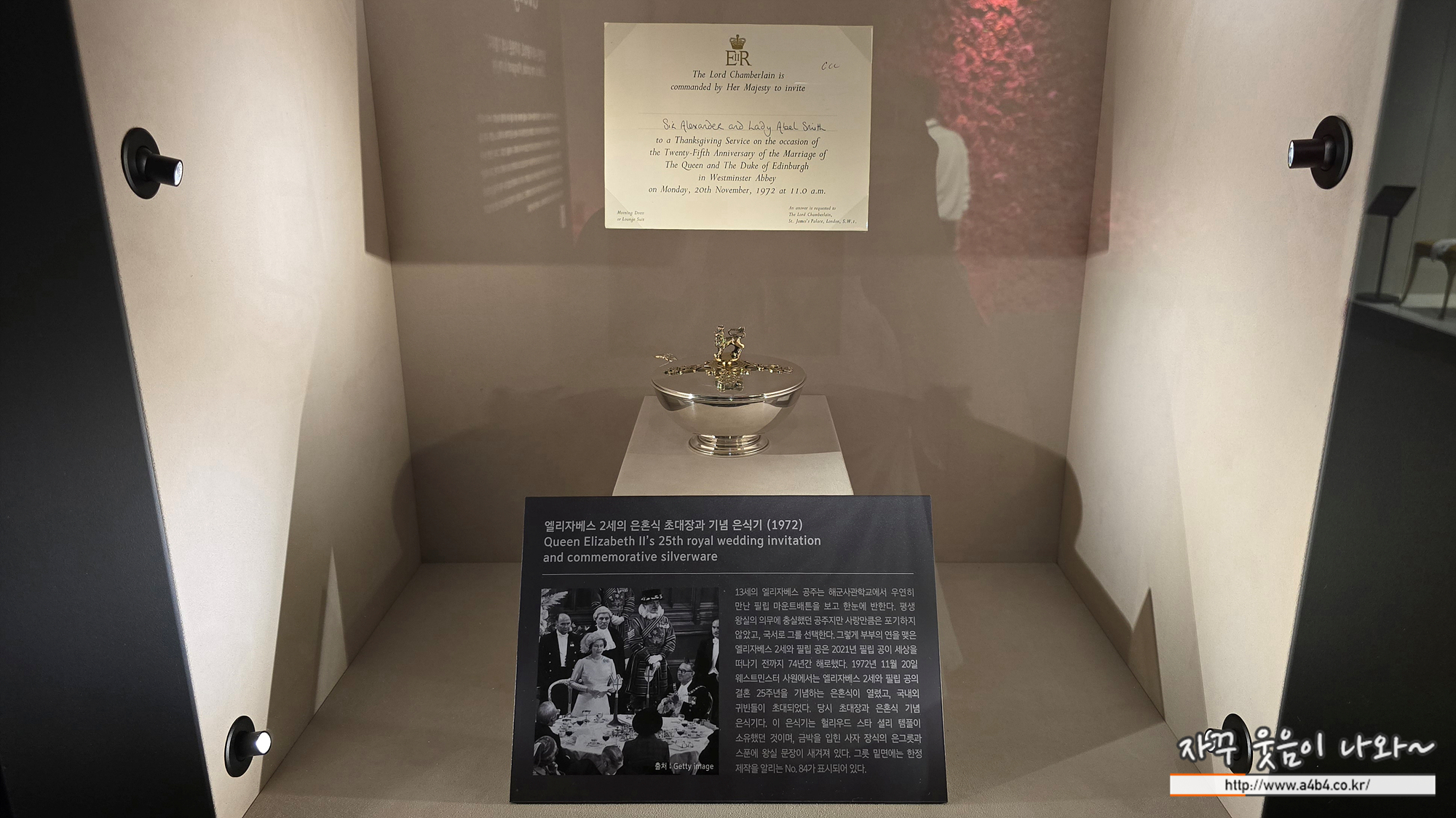 그리고 드레스 주변으로는 역대 결혼식의 사진과 기프트가 전시되어 있다. 쏠쏠히 보는 재미가...