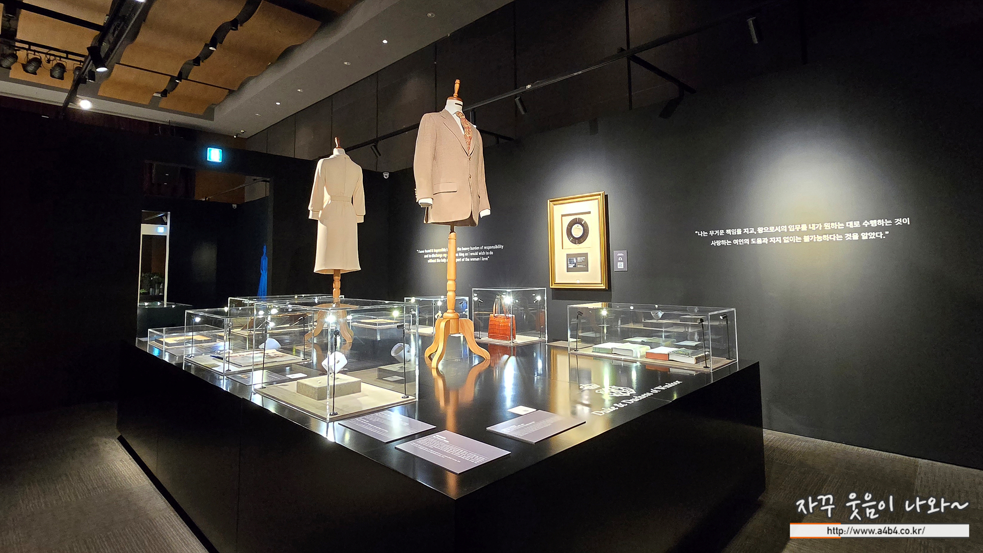 이번 특별전은 엘리자베스 2세가 현 국왕 찰스 3세를 잉태했던 신 혼 시절 착용했던 무도회 드레스로 시작하여, 다이애나 비가 결혼 식에서 착용했던 웨딩 베일과 1992년 방한 당시 입었던 버건디 로 즈 드레스로 마무리된다. 당시 노태우 대통령의 초청으로 성사 된 한국 방문은 찰스 왕세자 부부가 함께한 마지막 공식 일정이기 도 하다. 2023년 12월에는, 다이애나 비가 밴쿠버 방문(1986 년) 당시 착용했던 이브닝 드레스가 무려 15억 원이라는 경매 최고가를 기록하며, 다이애나 비에 대한 대중들의 그리움과 여전 한 사랑을 증명했다. 또한 사랑을 위해 왕위를 버린 윈저 공작 과, 영화 '킹스 스피치'의 실제 주인공인 조지 6세의 소장품도 만 날 수 있다.