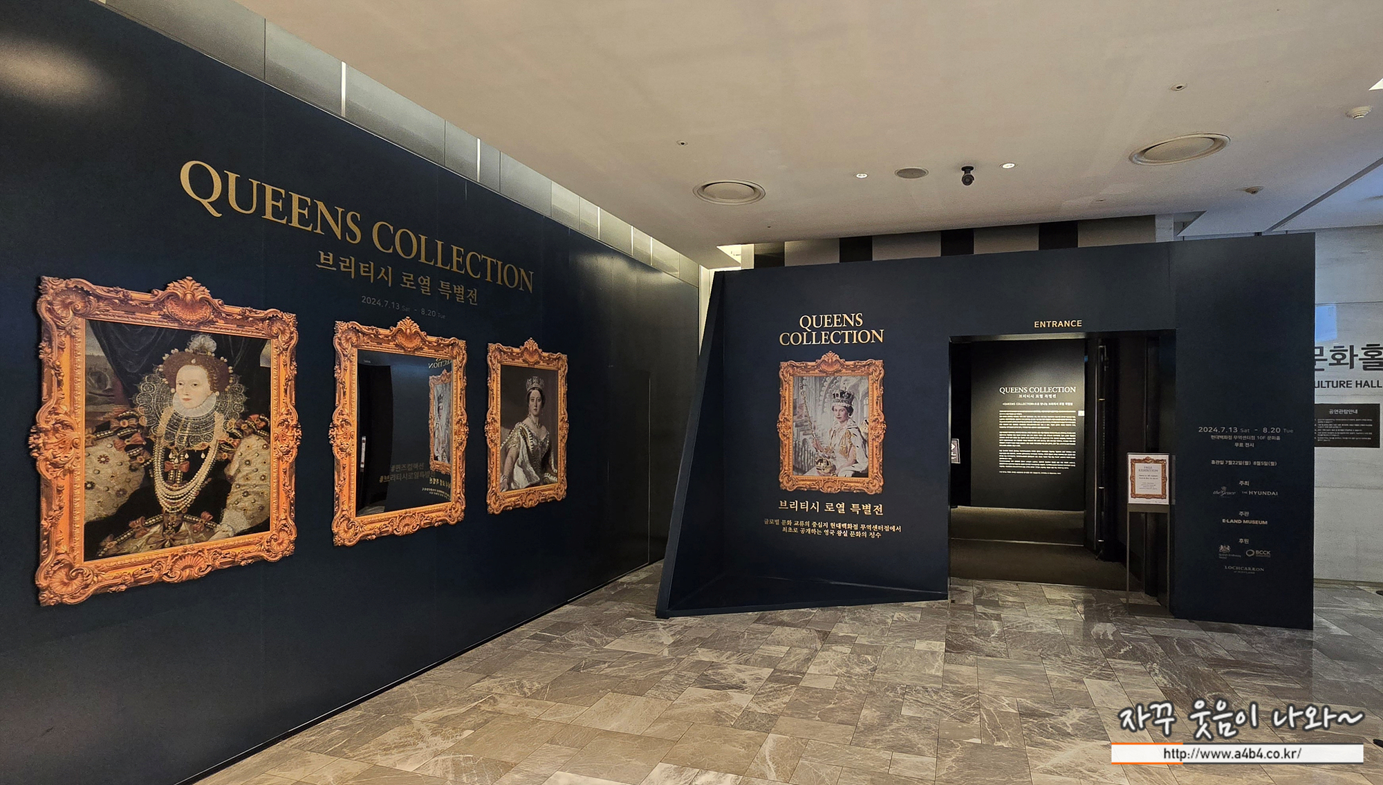 무역센터 현대백화점 10층 ‘퀸즈 컬렉션(QUEENS COLLECTION) 브리티시 로열 특별전’ 전시장 입장합니다.