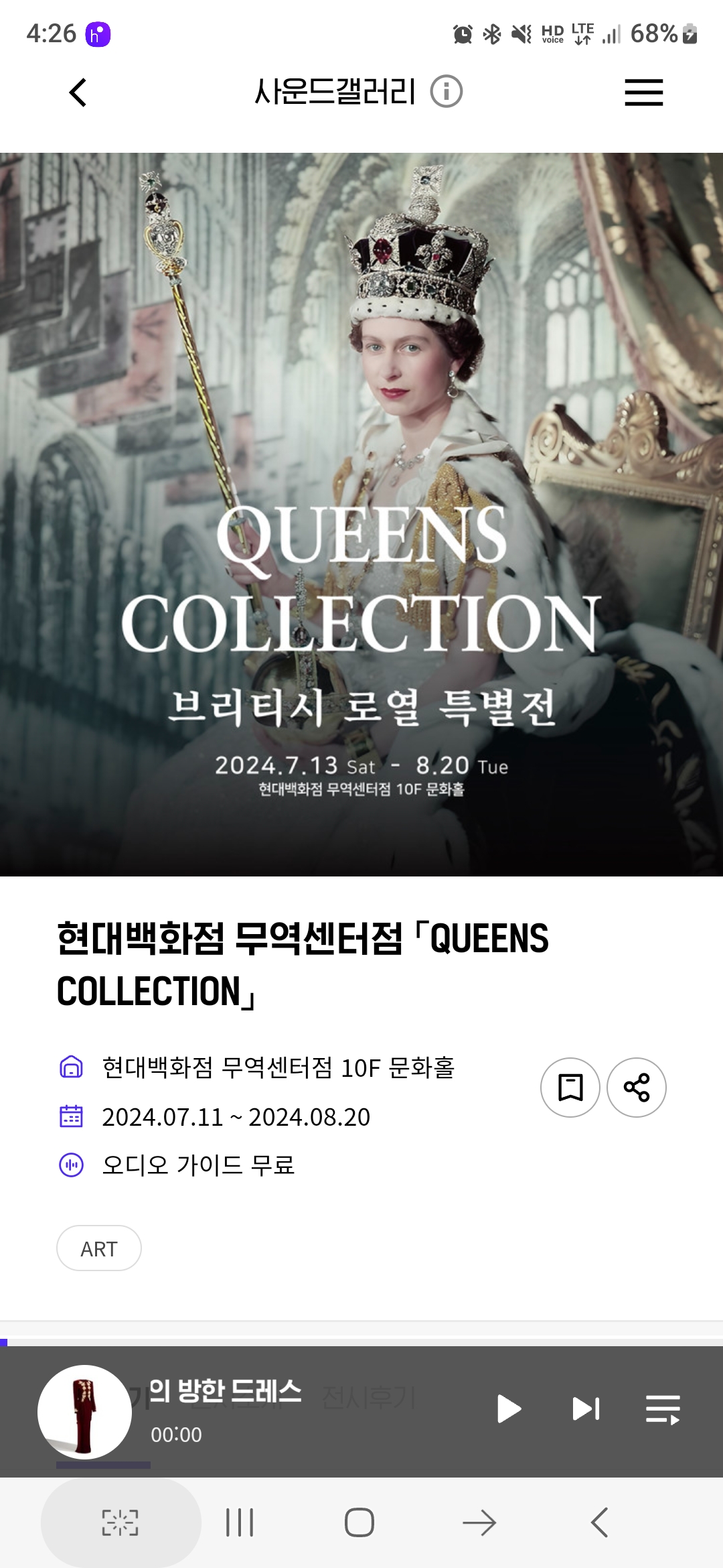 삼성동 무역센터 현대백화점에서 열리고 있는 ‘퀸즈 컬렉션(QUEENS COLLECTION) 브리티시 로열 특별전’ 관람후기 입니다. 무료 전시에 상업적인 목적이 다소 강한 느낌이어서 약간 아쉽기는 하지만 짧게 감상 가능한 강남 무료전시회 입니다.