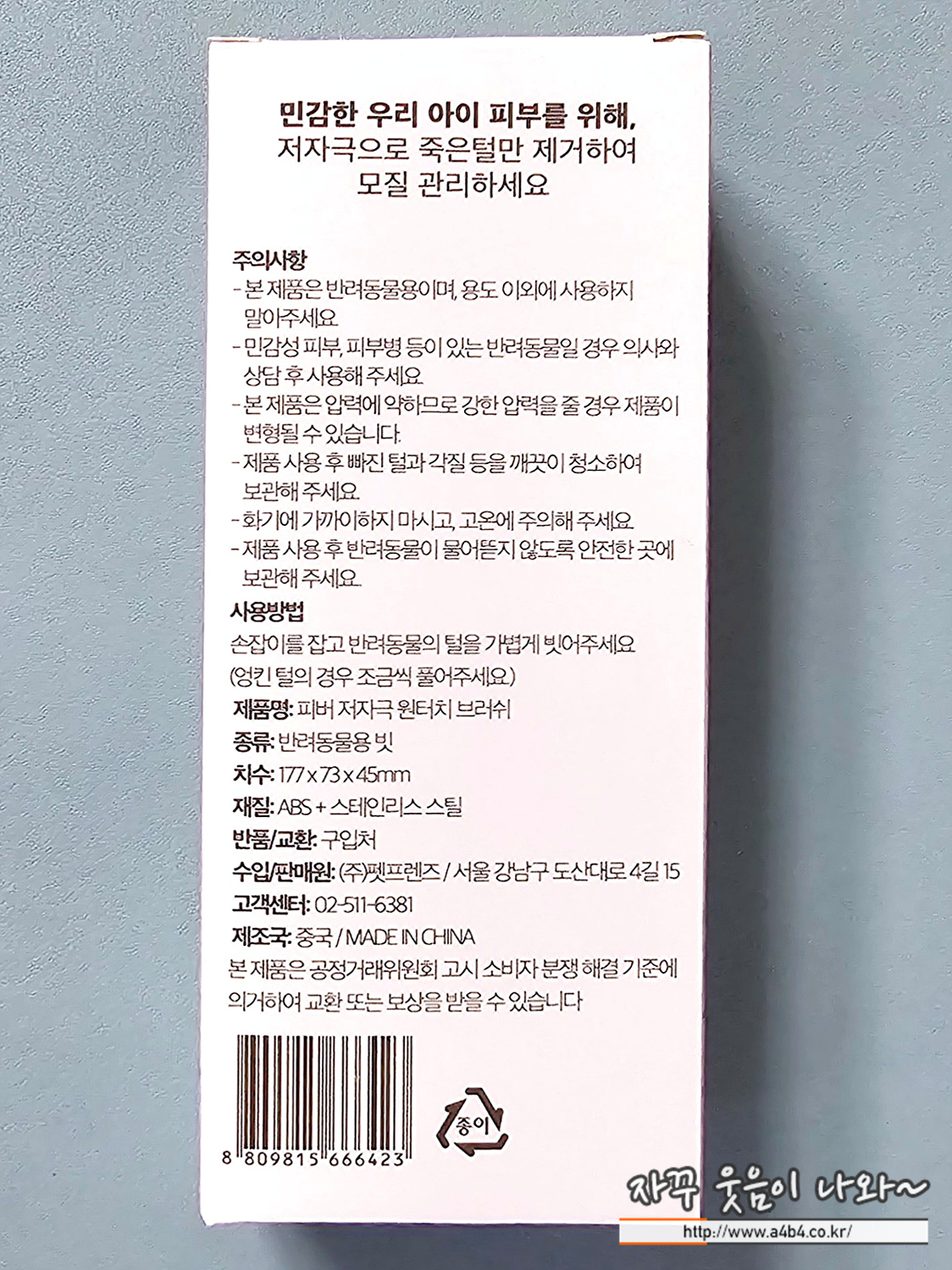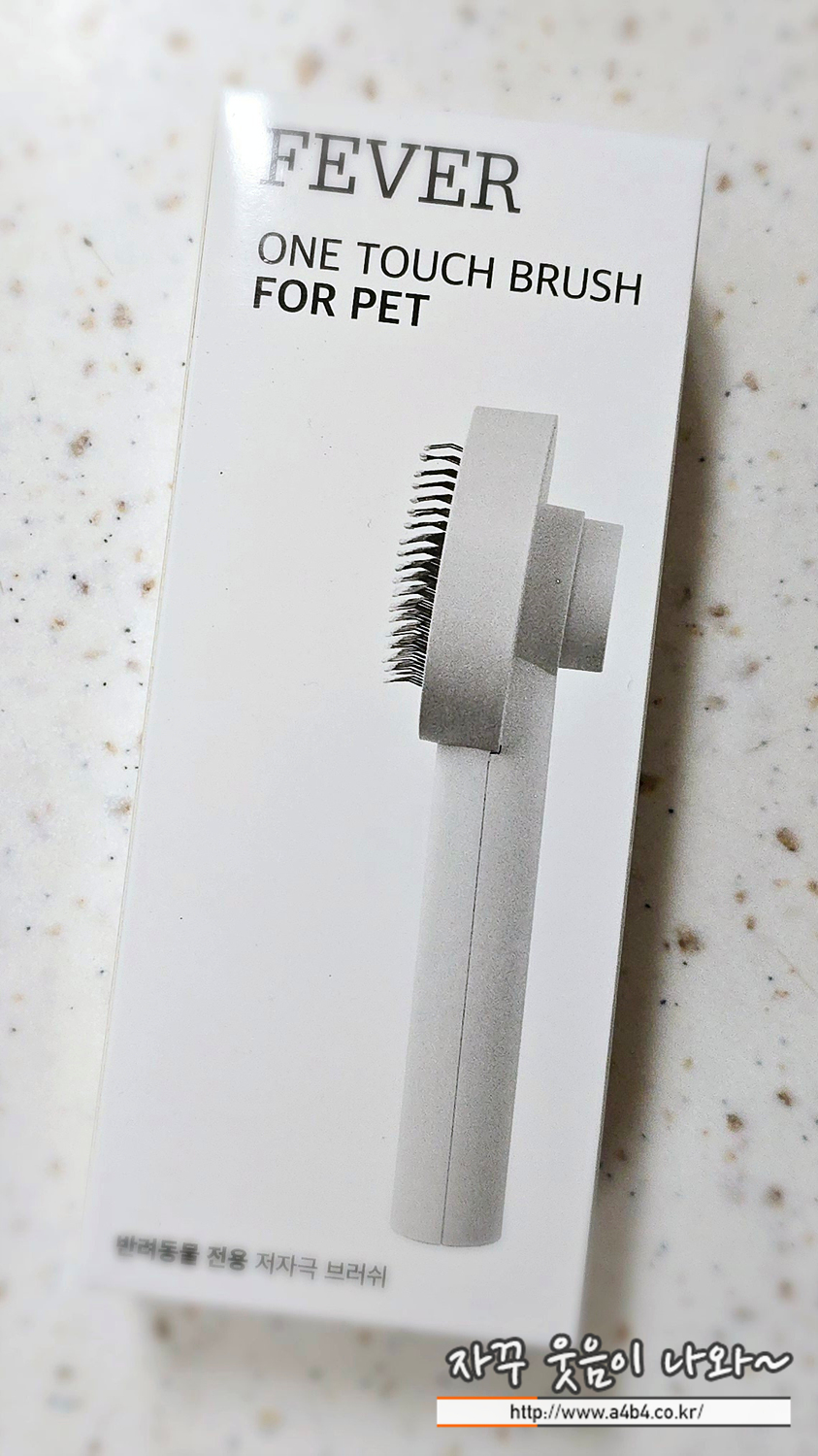 오늘 소개할 제품은펫프랜즈에서 나온 '피버 저자극 원터치 브러쉬' 입니다. 펫프렌즈 웰컴딜로 구입했고요. 가격은 4,900원에 구입했습니다. 뭐 당근 중국산으로 디자인이나 패키지는 깔끔하게 나왔습니다.