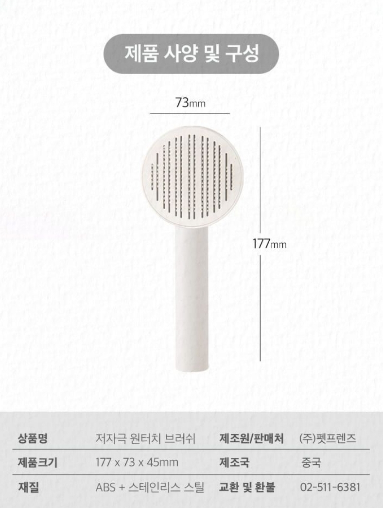 제조사 설명으로는 178개의 핀이 있고, 끝 부분이 둥글게 마감되어 강아지나 고양이에게 빗질하면서 주는 자극을 최소화한다고 합니다.