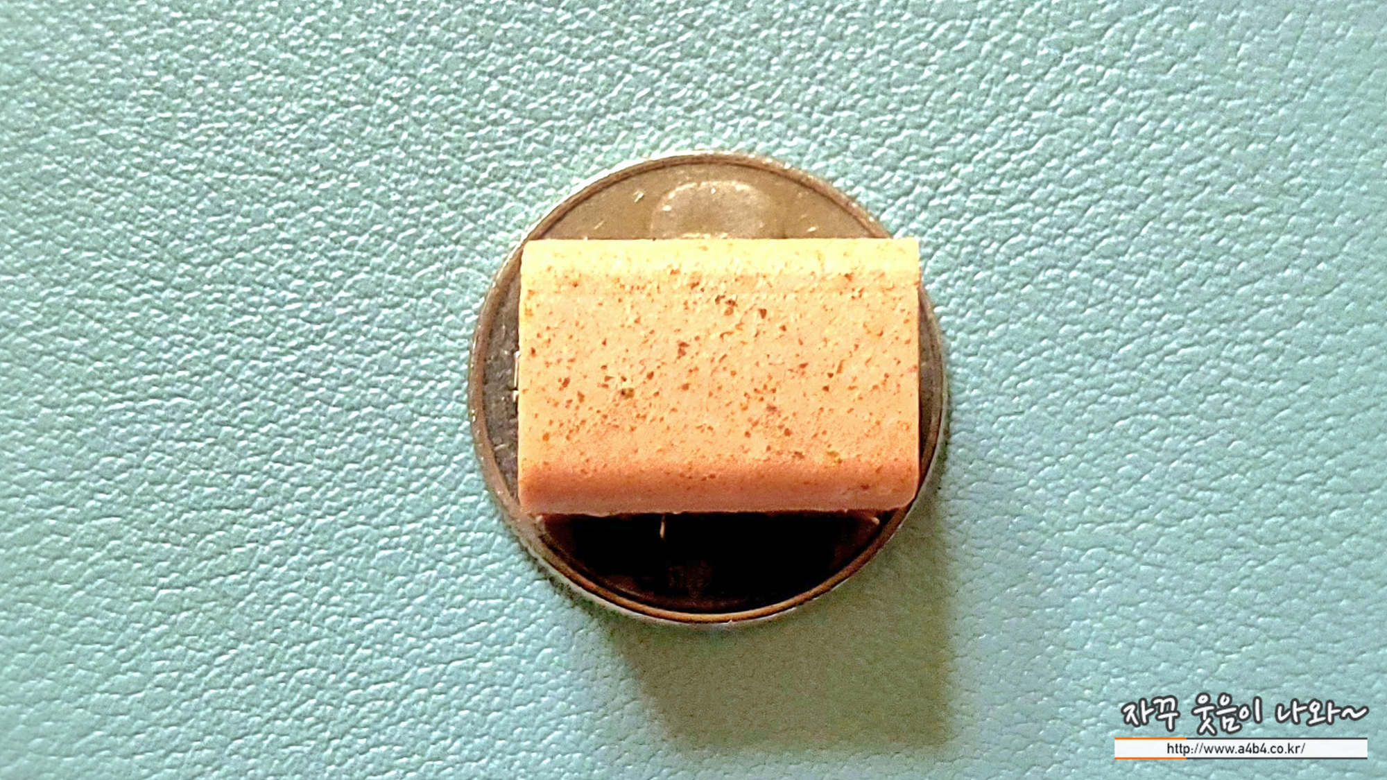 크기는 백 원 동전 크기로 강아지 간식과 비슷합니다. 츄어블 타입으로 말랑말랑하고 기호성이 좋아 아이가 약이라고 생각하지 못하겠네요.