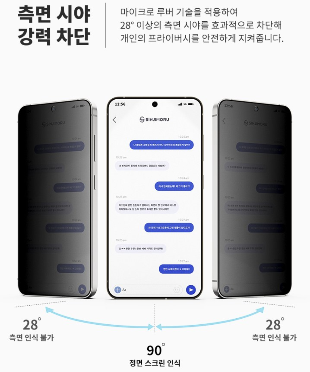 오늘 소개하는 '신지모루 자가복원 사생활보호 프라이버시 AG코팅 TPU 휴대폰 액정보호필름'은 측면 28도 이상의 측면에서는 화면이 검게 표시됩니다.