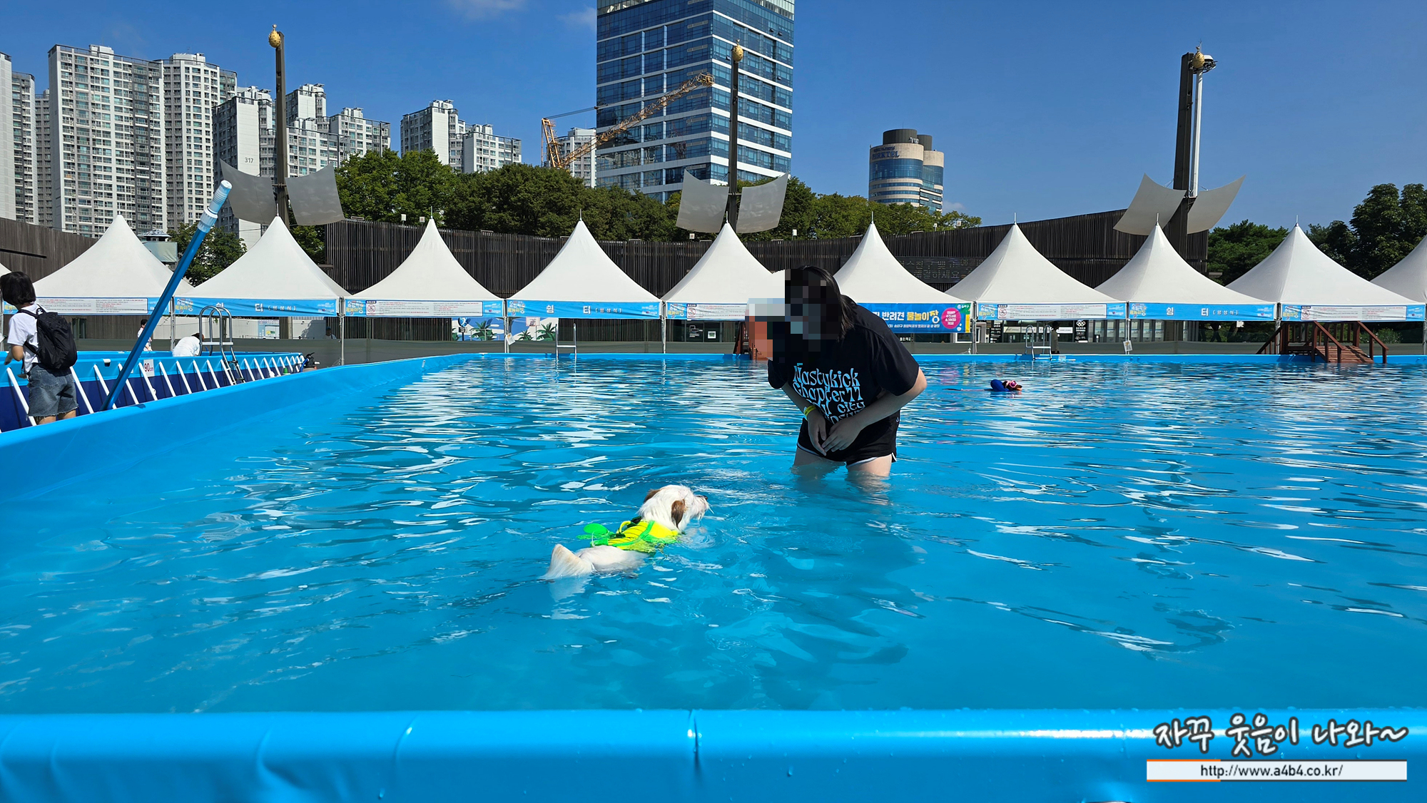 송파구 올림픽공원 평화의광장에서 열리고 있는 강아지 수영장인 '하하호호 올림픽 뱐려견 물놀이장' 이용후기 입니다.