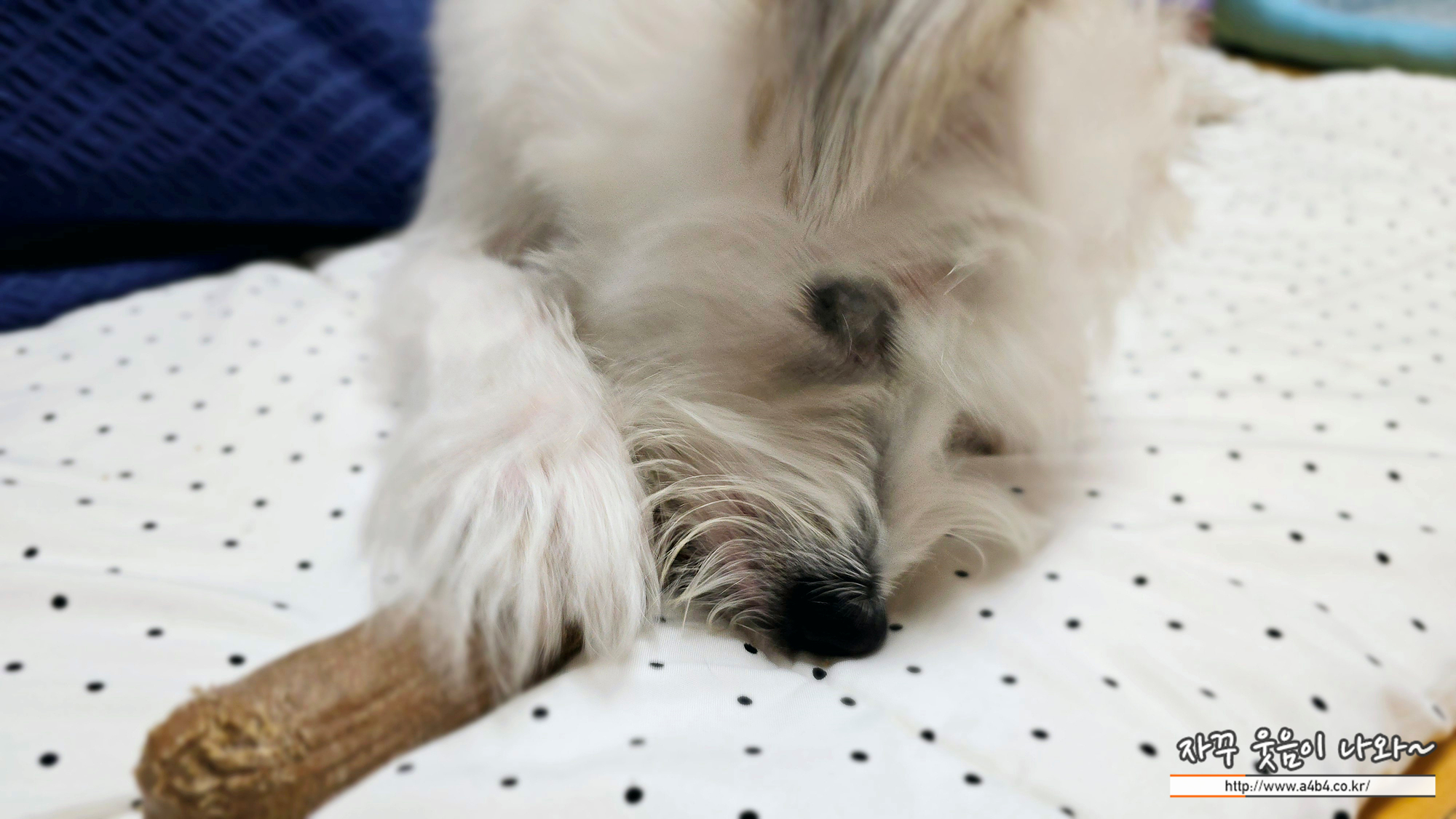 평소에는 집에서 뼈다귀를 물거나 인형을 가지고 놀고, 터그놀이 해달하고 하는데요.