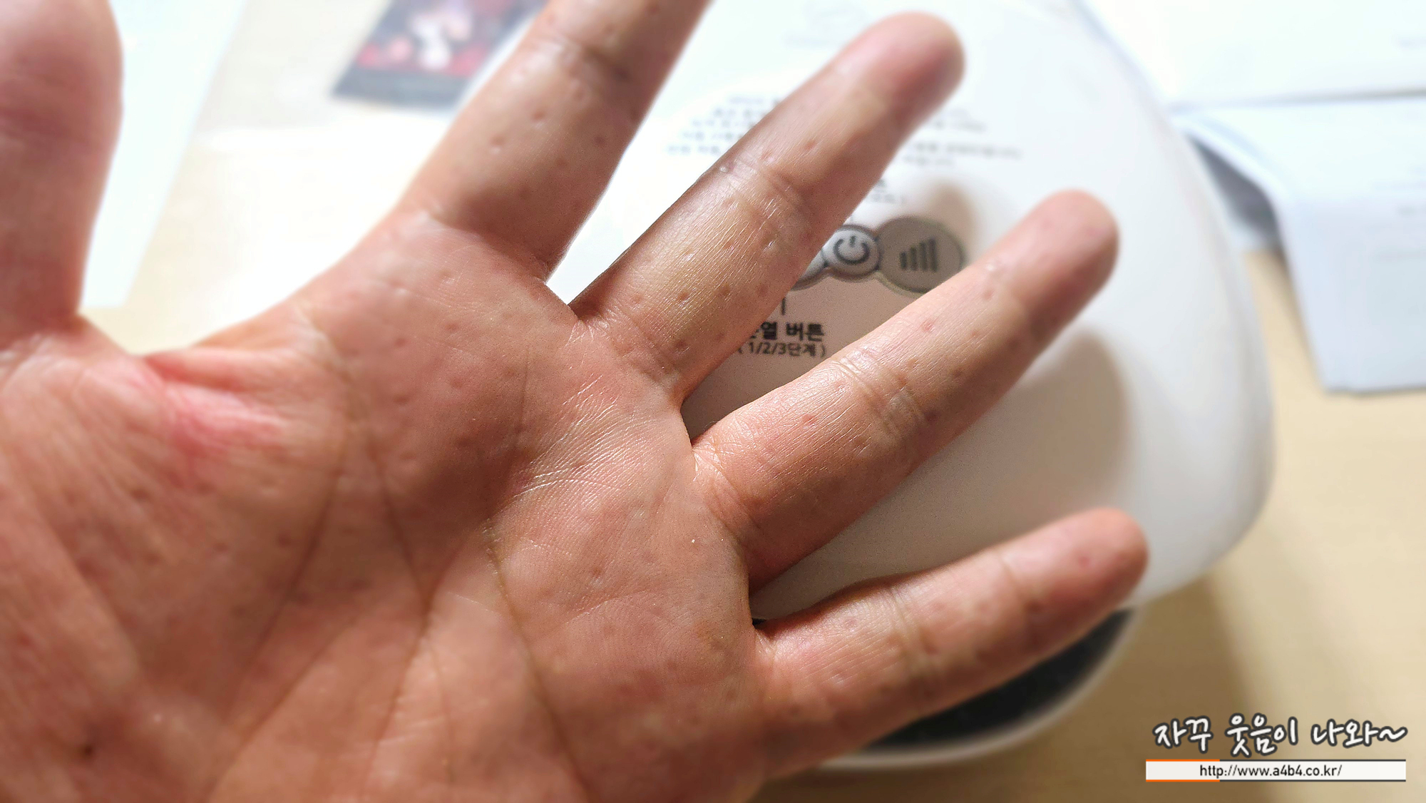 온열기능은 상당히 약합니다. 온열 찜질기라고 말하기는 민망한 수준입니다. 왜 쿠팡에서 판매되는 대부분의 손가락 마사지기 설명에 온열제품이 아나라는 문구가 있는지 알겠네요.