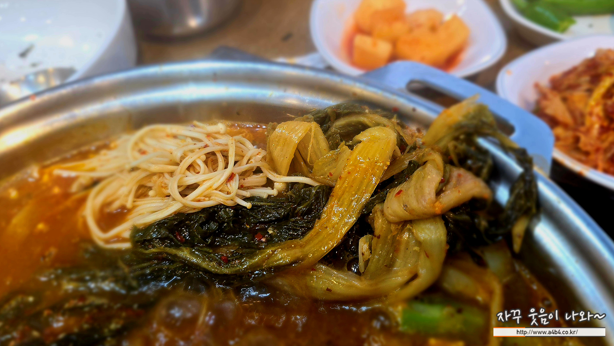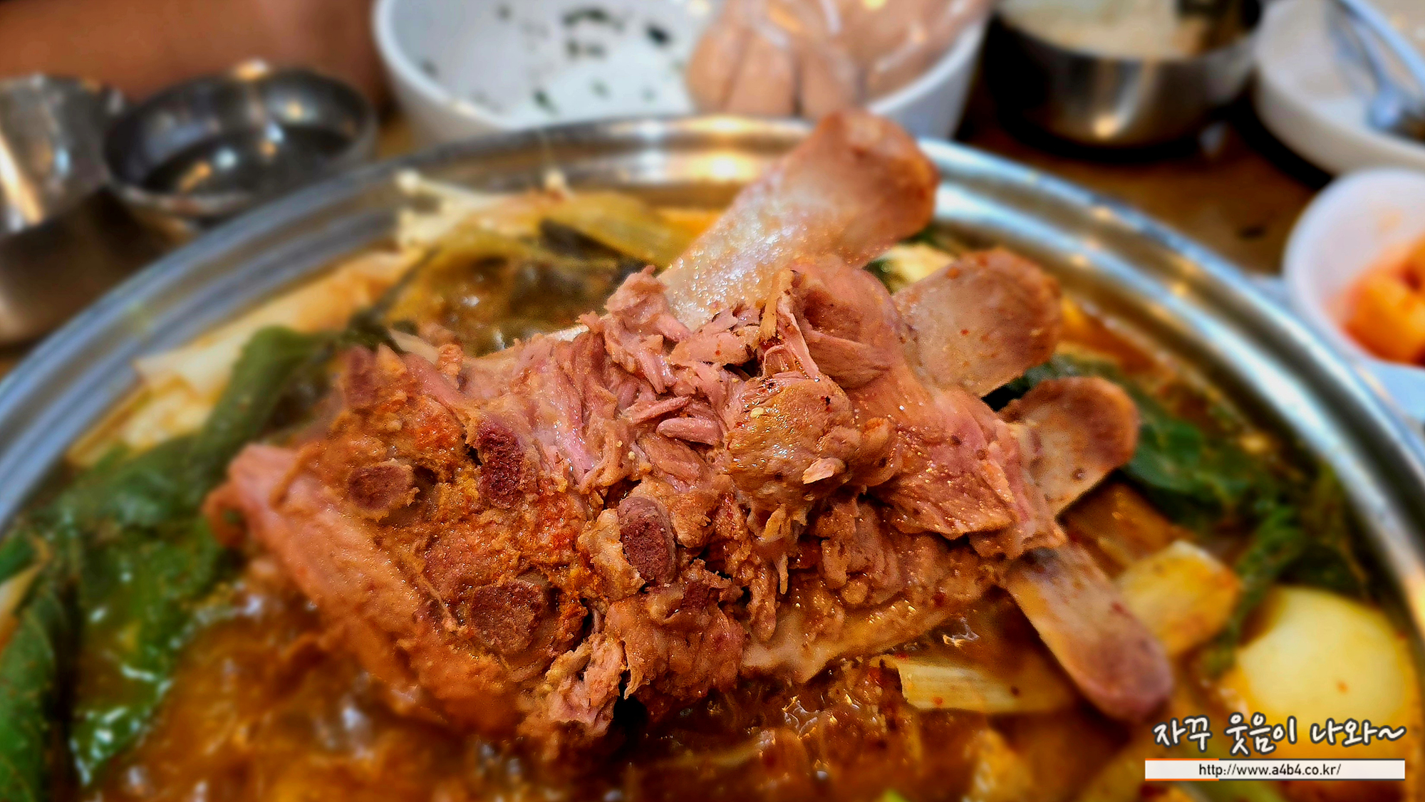역시나 감자탕속에 돼지뼈가 푸짐하게 들어 있습니다. 2명이면 싸우지 않고 먹을 정도입니다.