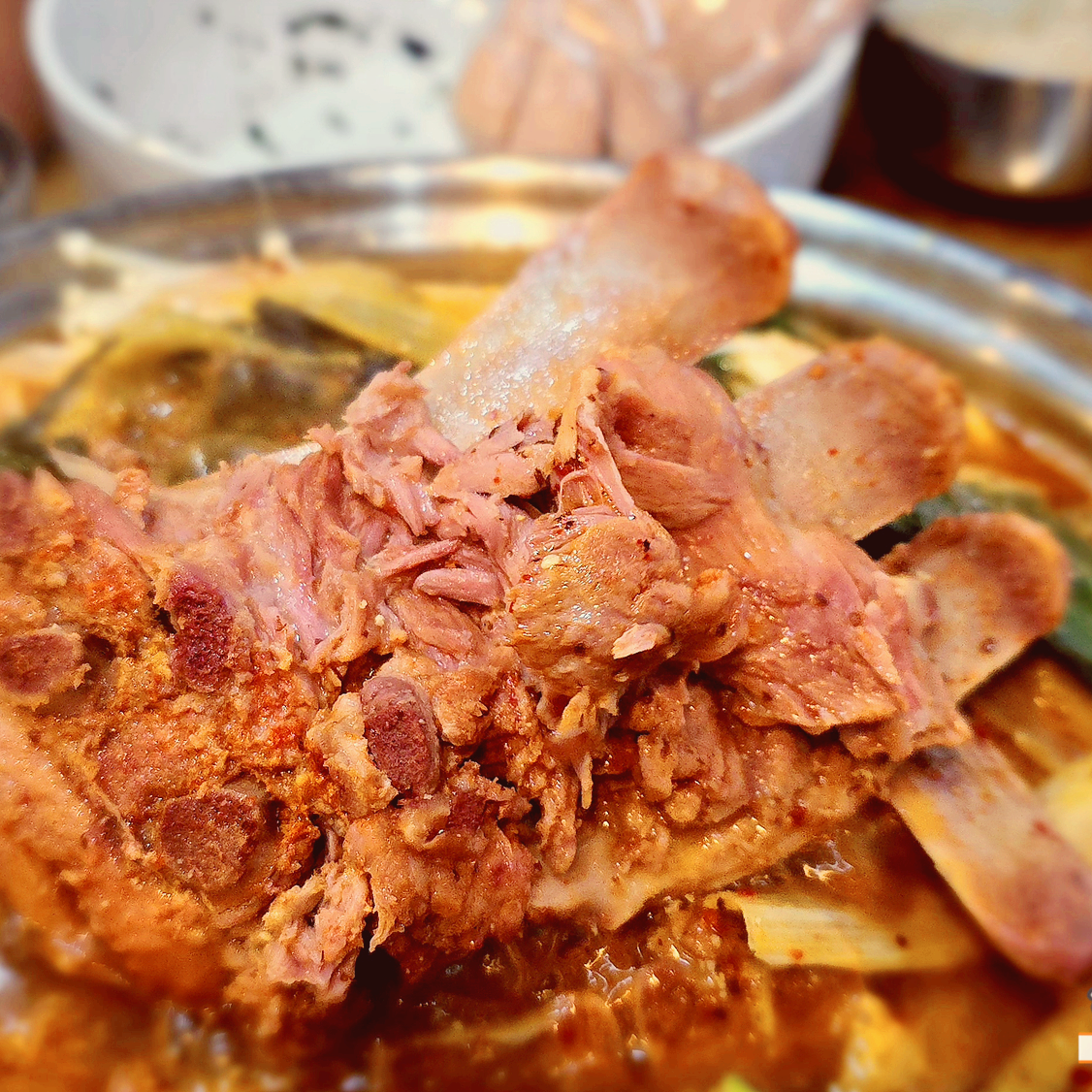 보통 감자탕은 돼지뼈를 사용합니다. (일행중에 감자탕이 소뼈인지 돼지뼈인지 물어보는 사람이 있었네요.)