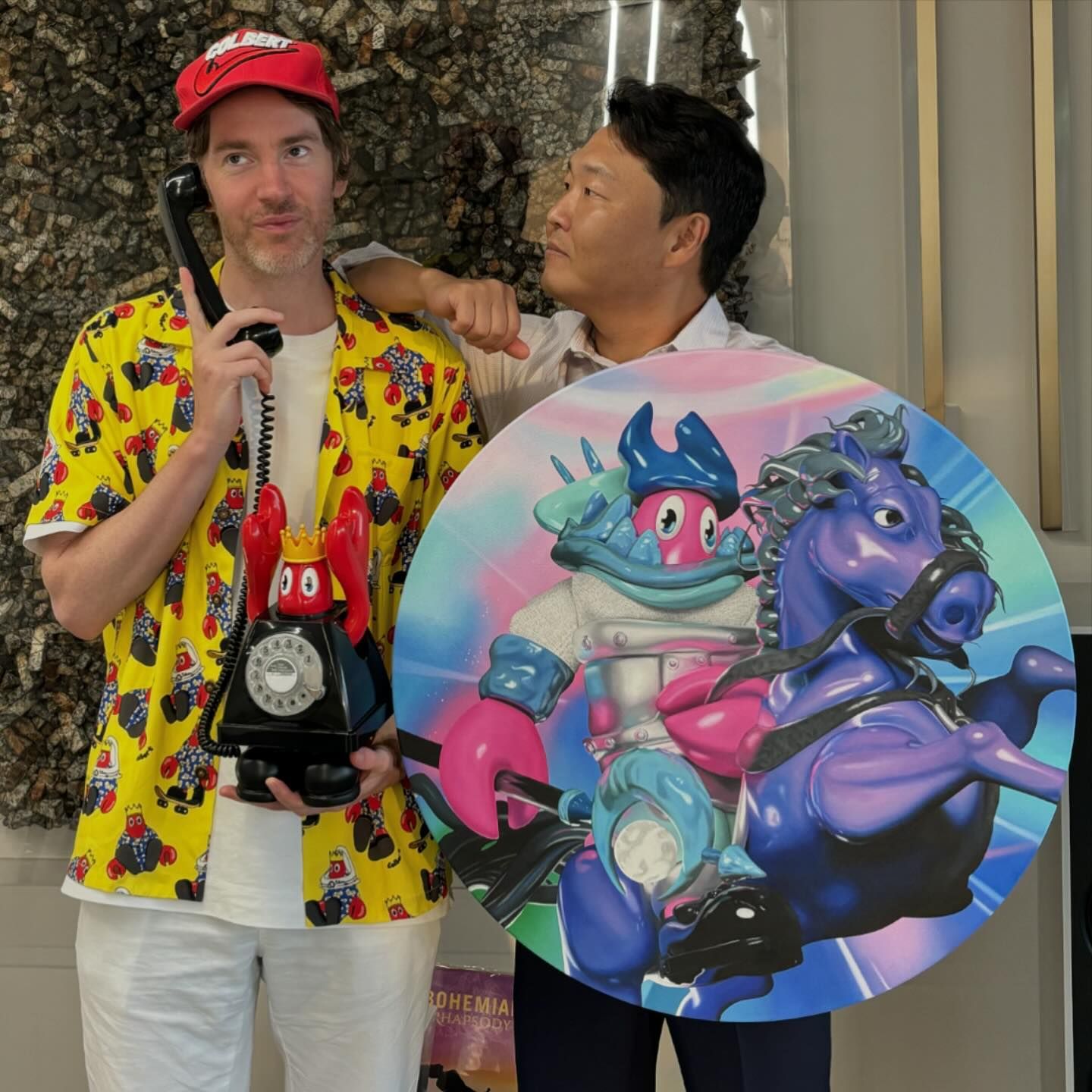 알록달록하고 시선을 사로잡는 작가의 작품들 중 당연 눈에 띄는 것은 개구진 표정과 커다란 눈동자를 가진 새빨간 랍스터입니다. 필립 콜버트는 랍스터가 자기 ‘자신’이며 ‘자연‘이라고 표현하며 랍스터를 통해 기존 예술 작품과 대중문화를 풍자, 희화화합니다.