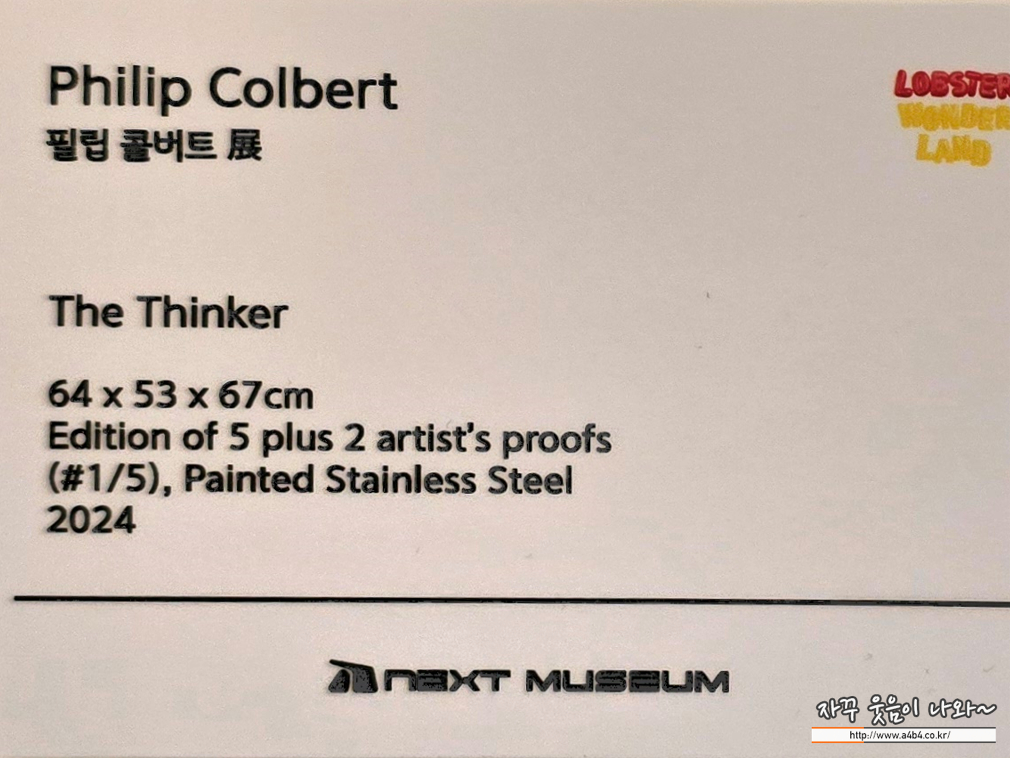 오늘 소개하는 잠실 넥스트뮤지엄에서 열리고 있는 필립 콜버트 특별展과 함께 롯데월드몰 광장과 석촌호수 동호에서는 '랍스터 원더랜드 (Lobster Wonderland)' 이름으로 필립 콜버트의 대형 작품들을 만나볼 수 있습니다.