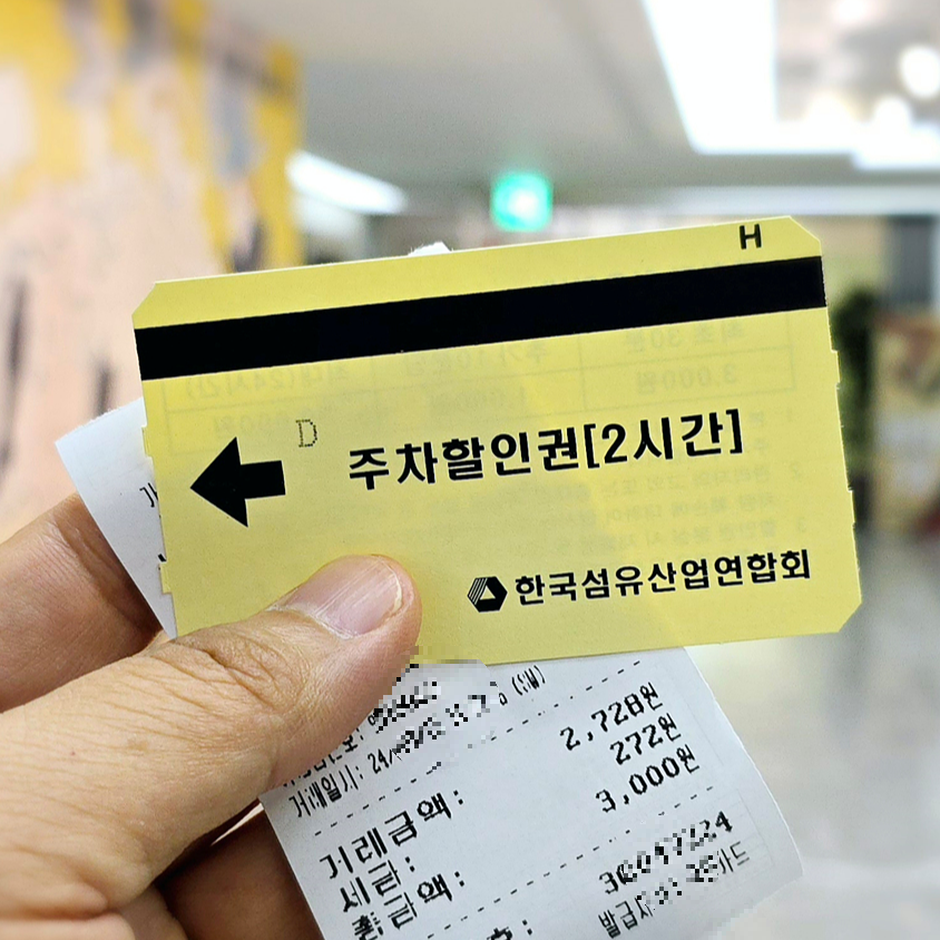 수령한 주차권은 지하 주차장에서 차량 번호를 입력하고, 주차할인권을 삽입하시면 됩니다. 한 대 차량에 한 장의 할인권만 적용이 가능하며, 초과된 금액은 신용카드 결제만 가능합니다.
