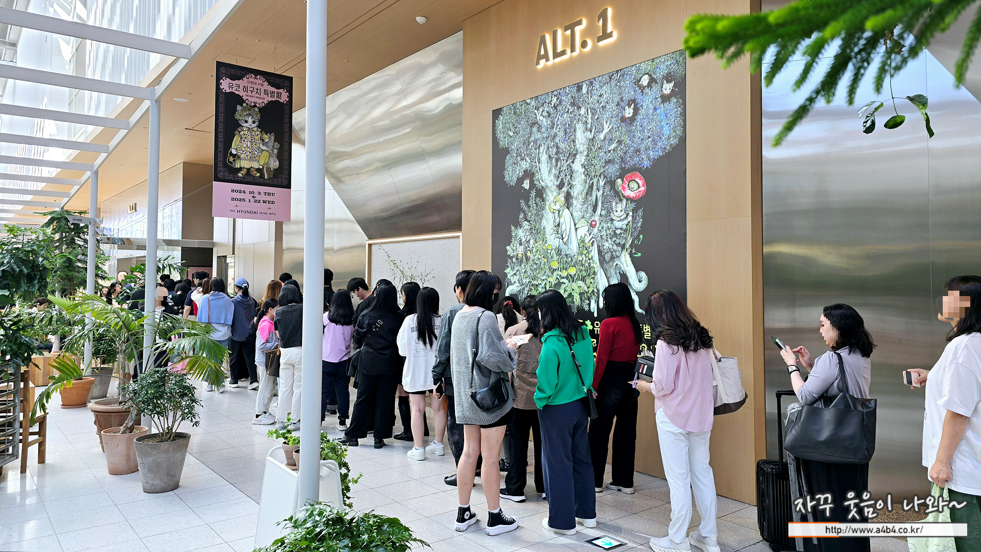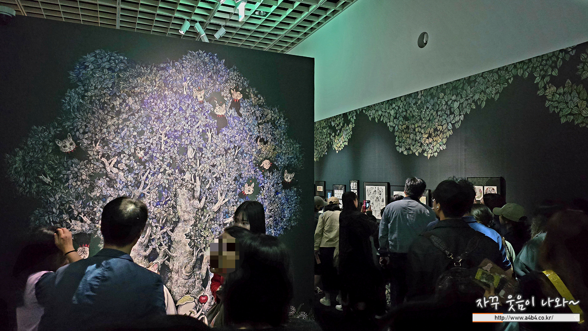 제가 방문한 10월 3일 오전 유코 히구치 특별전이 열리고 있는 더 서울 현대 ALt1 전시장 입구입니다. 입구에 선 긴 줄과 입장했다고 해도 도저히 앞으로 나아가지 못하는 관람객... 1천여점의 작품을 무슨 화장실 타일처럼 붙여 놓았으니 관람하기도 힘들지만, 도저히 관람객이 앞으로 빠지지 못합니다. 사람을 본 것인지 작품을 본 것인지...