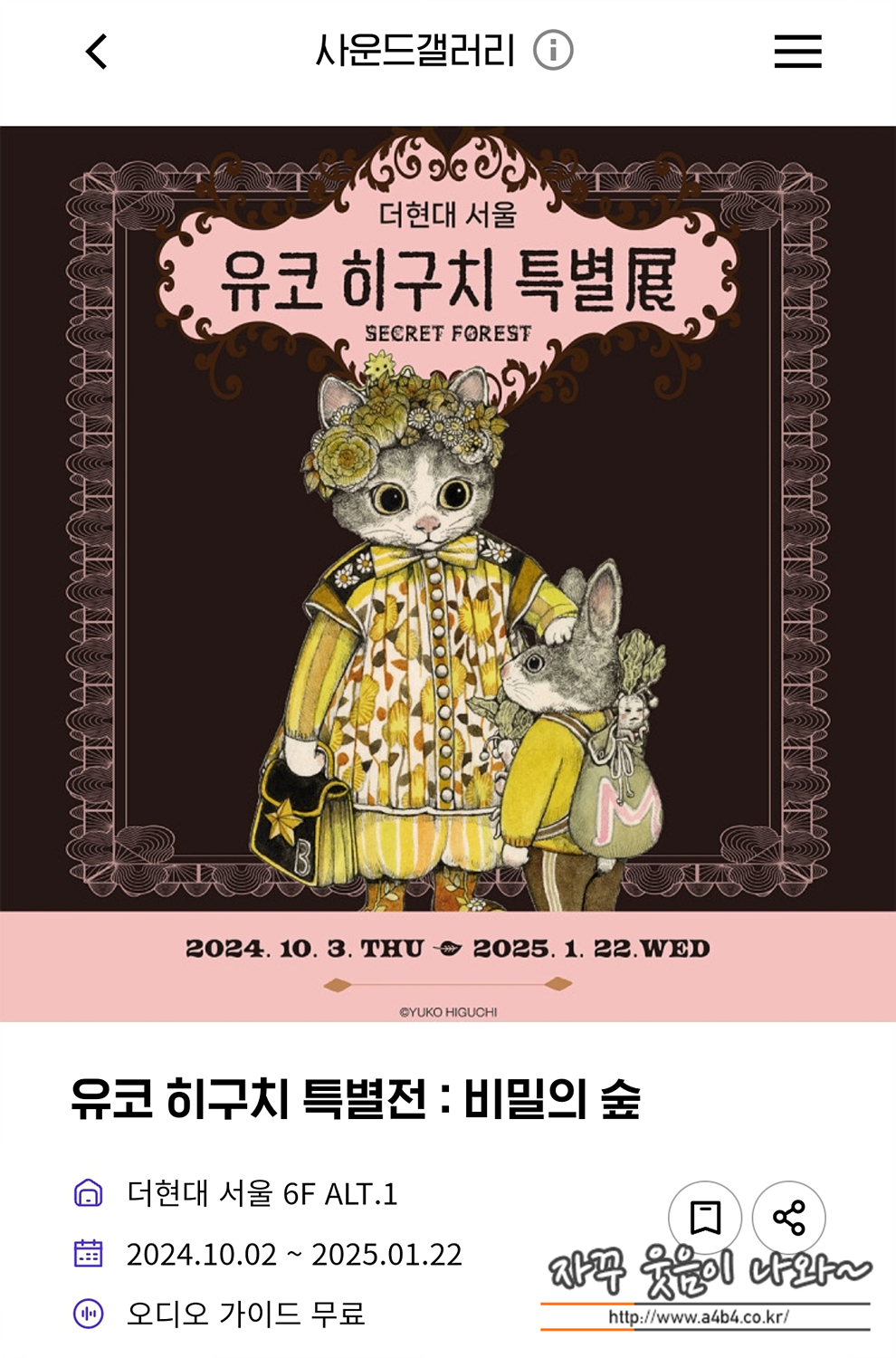 개천절인 어제인 10월 3일 오픈한 '유코 히구치 특별展 : 비밀의 숲' 전시회 개막일 관람후기입니다.
