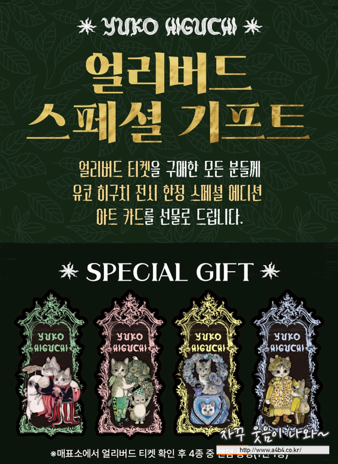 저는 3매의 얼리버드 티켓 예약 후 전시회장 방문해서 아래와 같이 유코 히구치 작품이 들어간 아트 카드를 스페셜 기프트로 받았습니다.