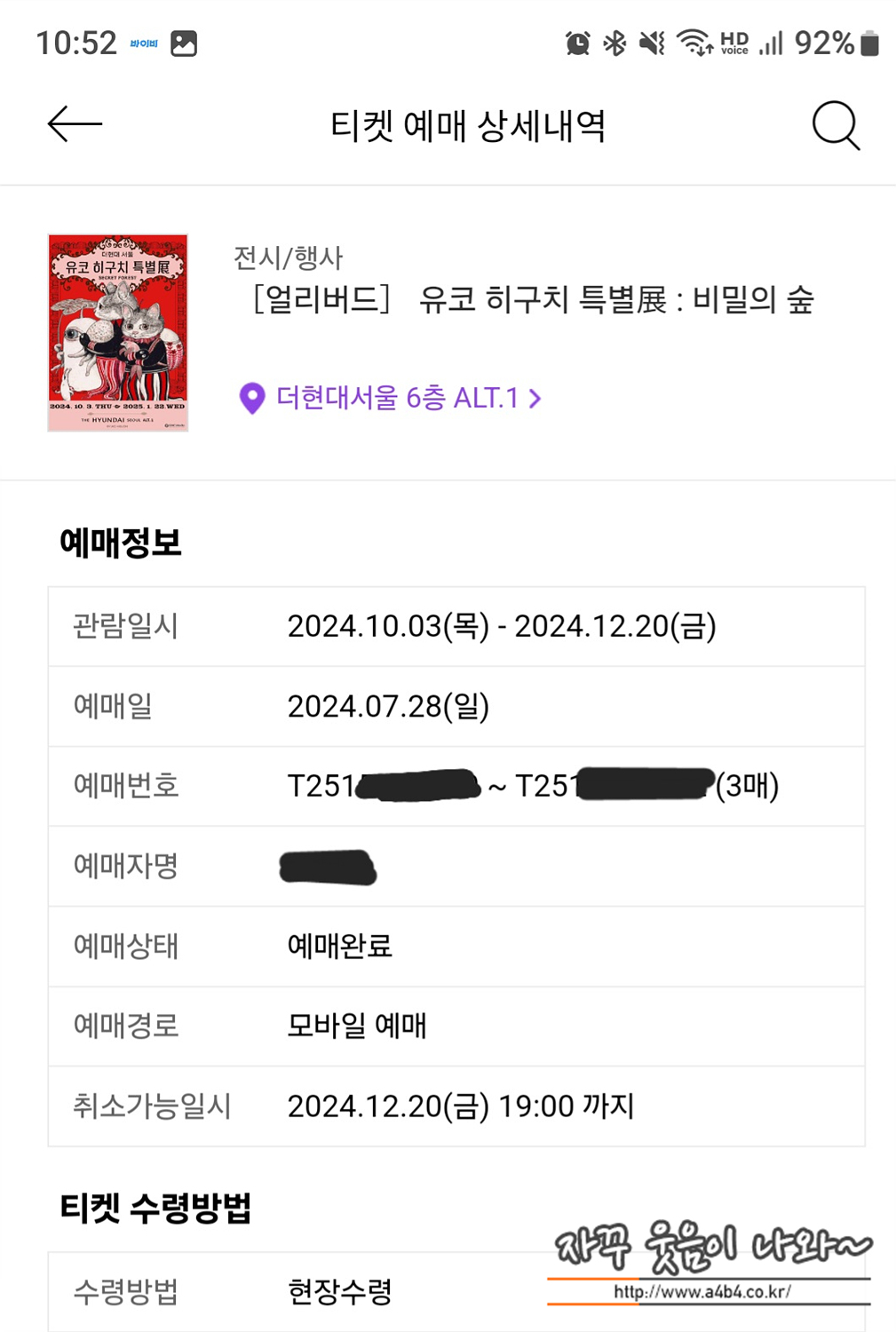 유코 히구치 전시회 무료주차는 최대 2시간 가능하며, 구매수와 상관 없이 최대할인 시간입니다만, 오늘은 전시회 대기 및 이동에 소요된 시간만도 1시간이 넘어가는 것 같네요. 또한 아트샵에서 구입한 금액은 현대백화점 주차 할인에 추가되지 않습니다. 초과시 주차요금 지불하셔야 한다는...