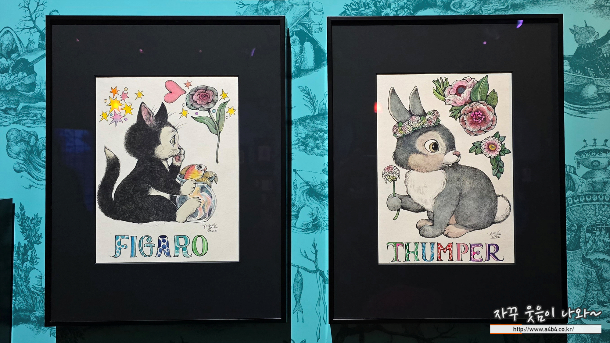 유코 히구치 작가는 다양한 기업과의 컬래버레이션을 하였습니다. 패션 브랜드인 구찌를 비롯하여 산리오, 포켓몬 등 다양한 기업과의 작품 활동은 많은 화제가 되기도 했습니다. 특별히 이번아시아 투어에는 월트 디즈니와의 컬래버레이션 작품들이 포함되었습니다. 작가는 월트 디즈니와 협업한 세 번의 디즈니 아티스트 컬렉션을 통하여 작가만의 독특한 터치가 가미된 피가로,아리스토캣, 이상한 나라의 앨리스 등을 선보였습니다.