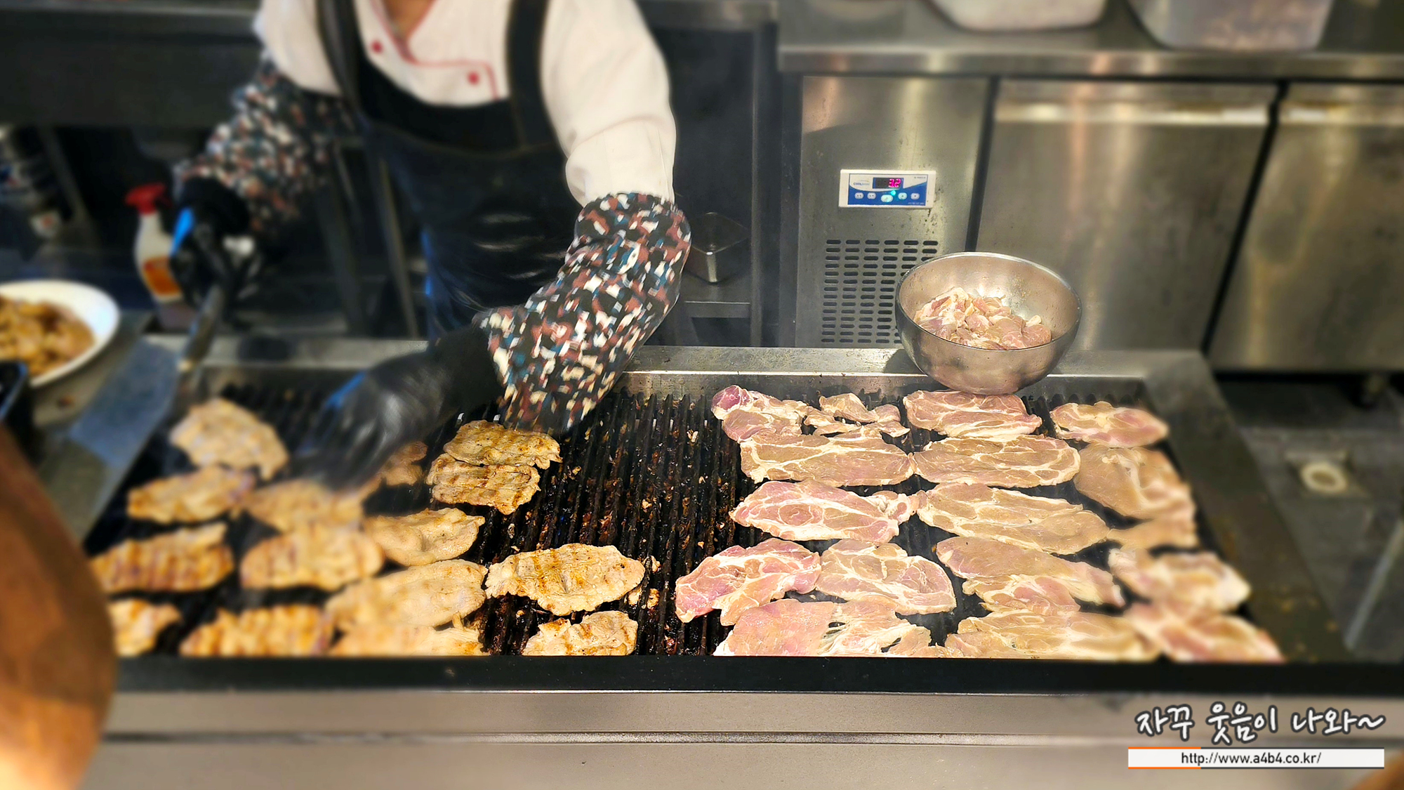 뷔페 식사는 구역별로 정리되어 있고요. 고기류와 튀김류가 나오는 메인구역과 초밥 등이 있는 해산물 구역, 샐러드와 과일이있는 구역, 한식요리가 있는 구역등으로 구분되어 있습니다.