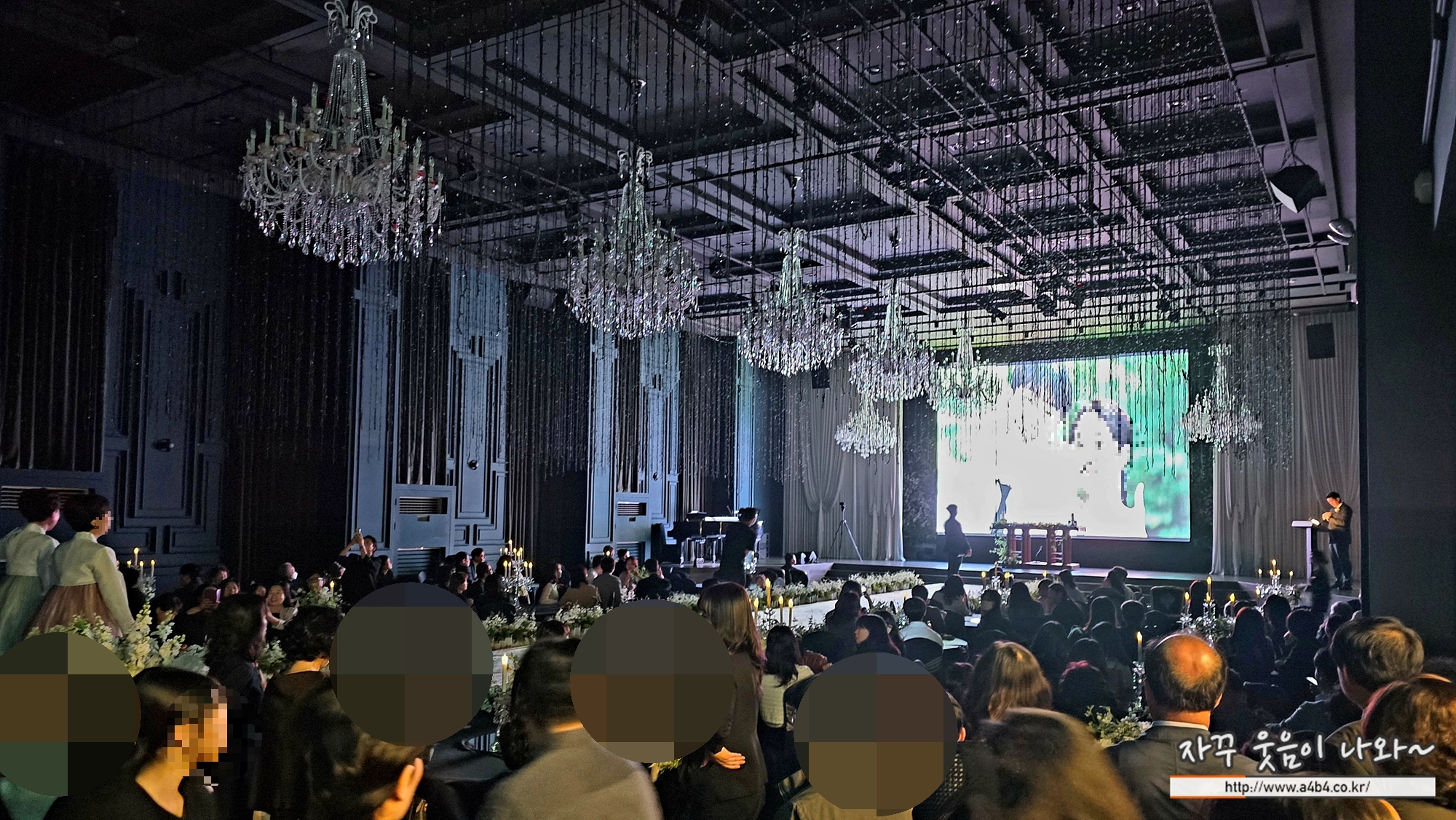 식 시작전에 잠깐 웨딩홀 들어가봤네요. 일반적인 웨딩홀과 구성은 유사합니다. 아주 큰 특색이 있거나 그렇지는 않고요. 조잡하거나 다소 오버하는 분위기도 아니고 결혼식 분위기에 맞게 차분하고 안정적인 분위기를 보여줍니다.