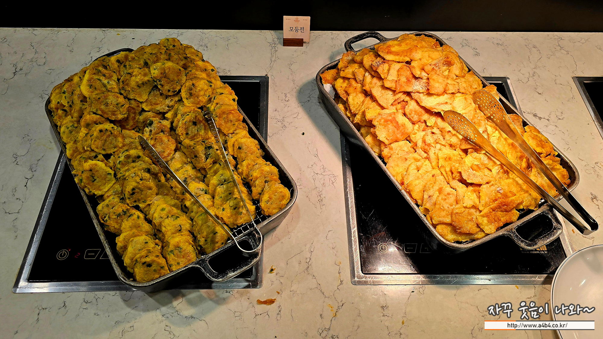 이곳은 뷔페 메인 구역으로 전과 튀김류 고기류가 있었네요. 아이들 좋아하는 돈까스도 있었는데요.