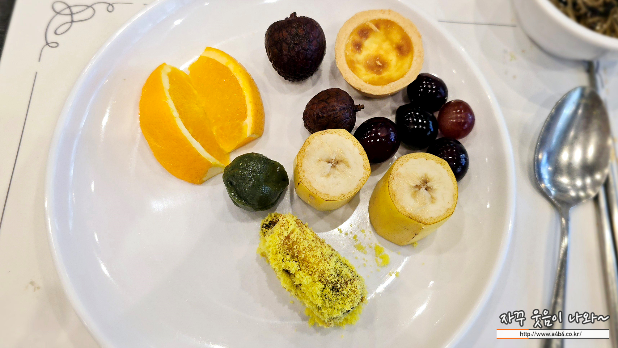 과일 구성은 대략, 바나나, 오렌지, 포도, 람부탄 있었네요.