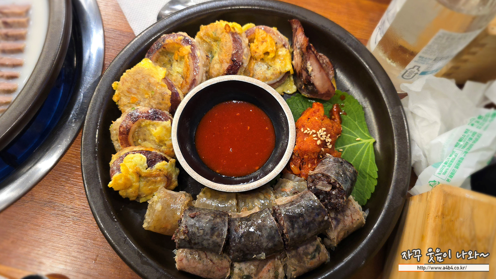 오징어 순대와 토속순대가 같이 나오는 모둠순대입니다. 오징어 순대나 일반 순대나 맛은 무난했네요.