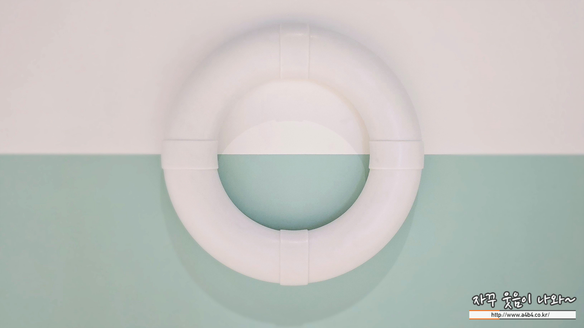 수영장 벽에는 대리석으로 제작된 구명환이 걸려있다. 일반적으로 플라스틱과 같이 가벼울 재질로 제작되는 구명환은 대리석으로 제작되어 고전 조각과도 같은 지위를 획득했다. 구명환은 인간의 취약함을 상기시키지만, 동시에 연약한 생명을 살릴 수 있는 도구이기도 하다. 이 조각 또한 작가들이 전통적인 기호나 오브제를 변형하여 일상적인 의미를 재고하게 하는 연작에 포함된다.