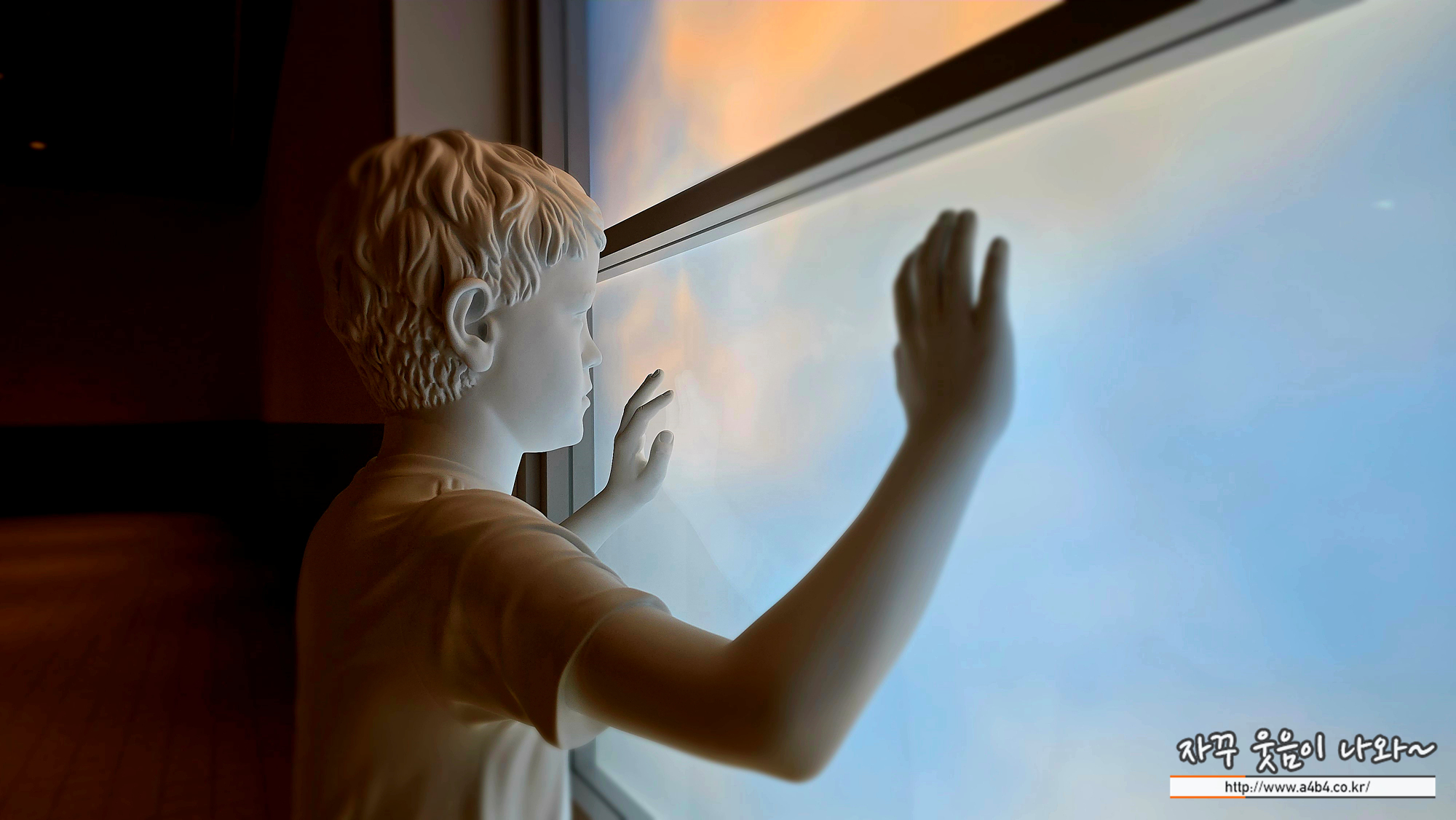 첫 번째 소년은 창 너머의 하늘을 바라보고 있다. 이 작품은 어린 시절의 보편적인 감정을 소환하며 우리가 어릴 적 경험했던 외로움과 갈망을 떠올리게 한다. 아이들은 종종 상상력을 이용해 이러한 어려움을 극복하는 방법을 가지고 있다. 소년의 모습은 희망과 가능성을 상징하며, 이는 단절된 상태에서도 희망과 꿈을 추구하는 인간의 본성을 상기시킨다.