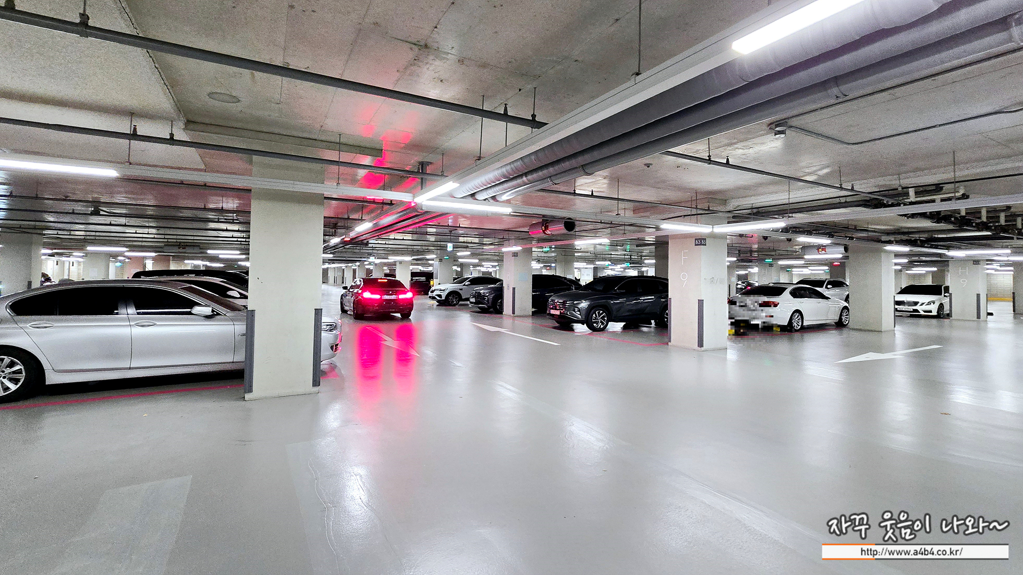 지하 내려가는 공간과 폭이 넓어서 진출입에 전혀 어려움 없어, 같은날 삼성동 코엑스몰 주차장도 이용했는데, 이곳에 비하면 코엑스몰 주차장은 거의 달동네 올라가고 내려가는 느낌...