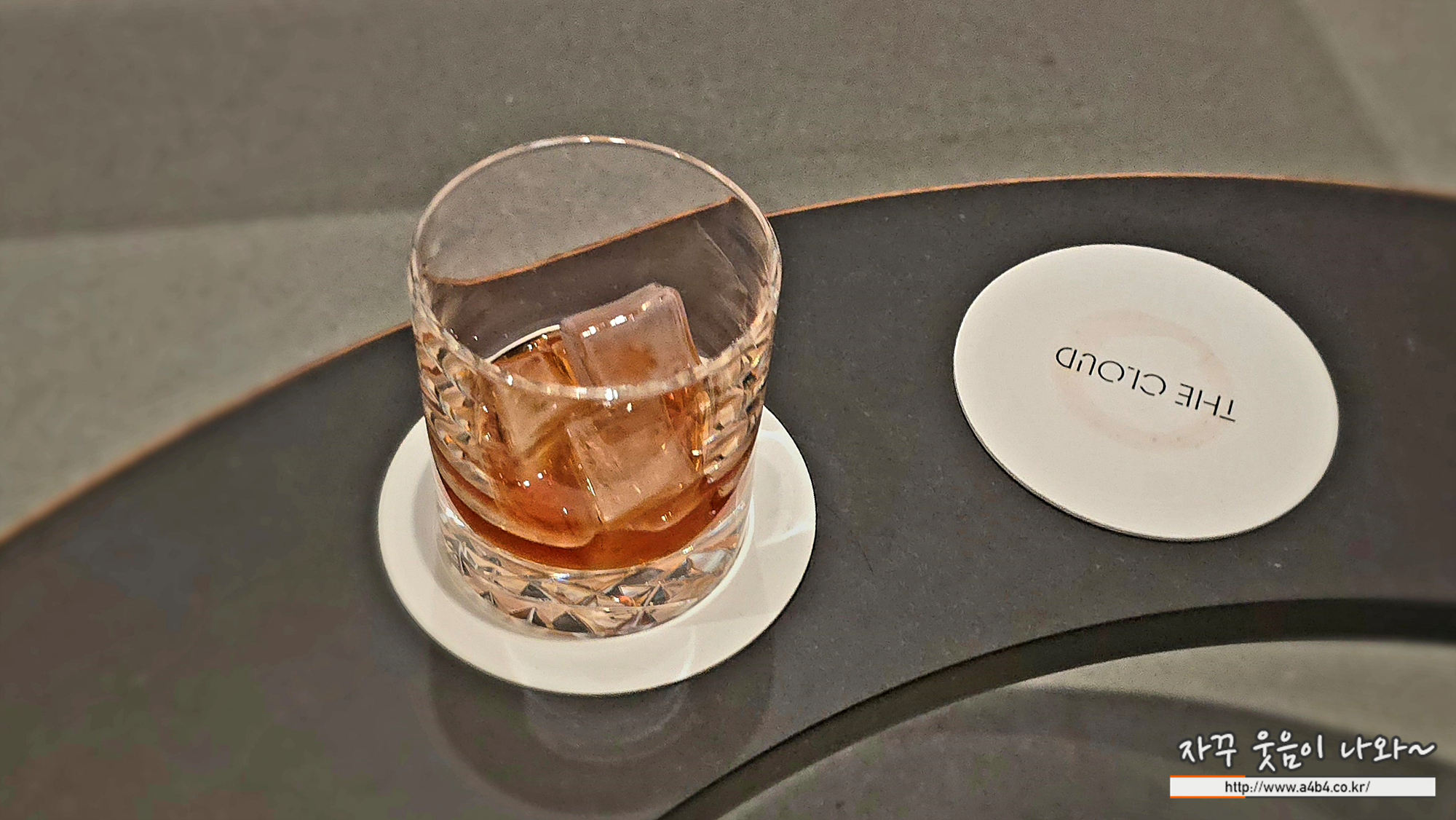 머리위에 있는 언더락 한 잔...