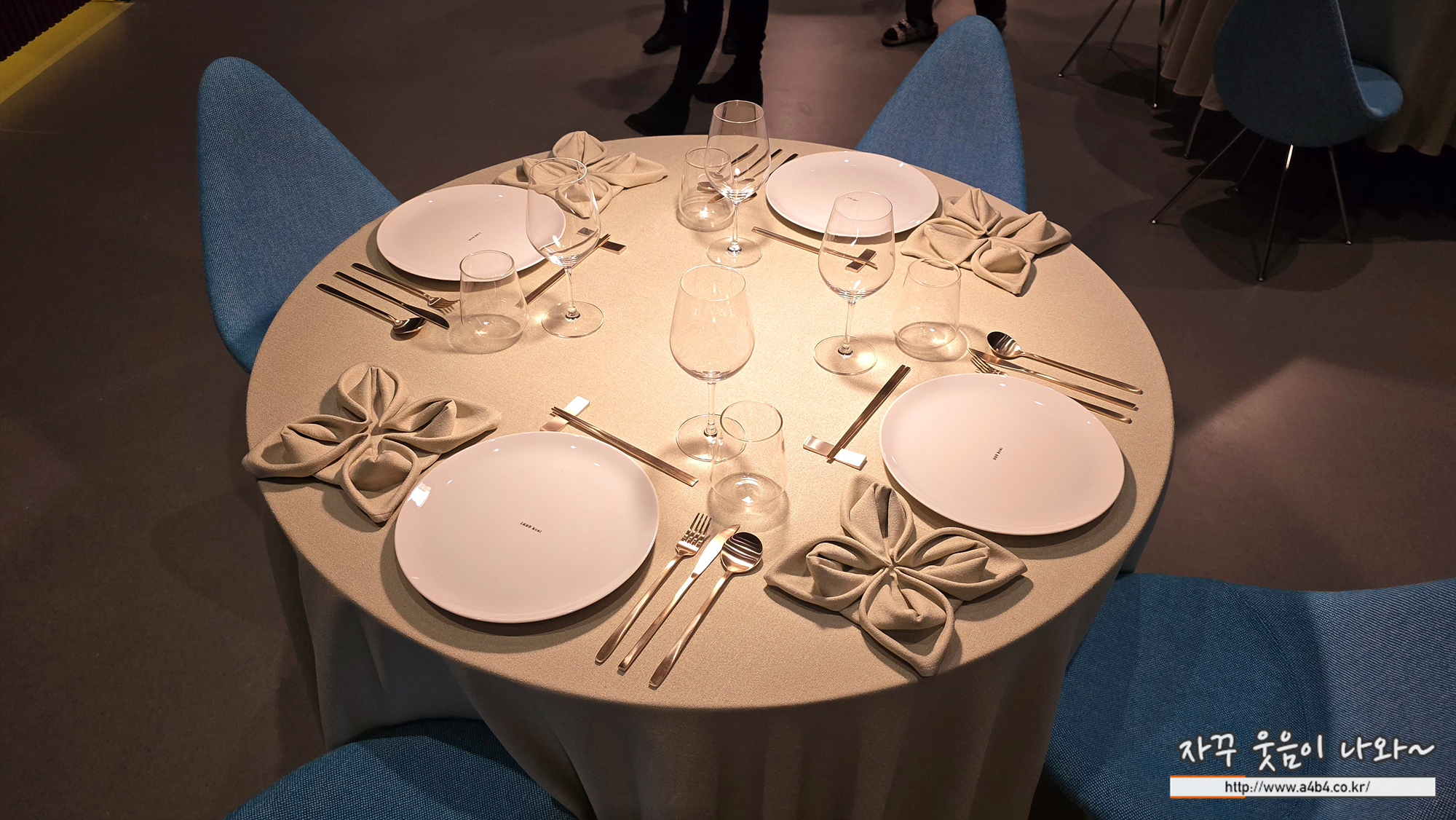 잘 세팅된 더 클라우스 레스토랑 테이블 접시위에는...