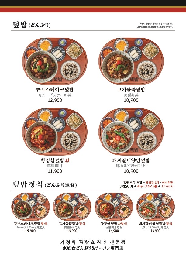메뉴는 덮밥, 라멘, 소바, 돈카츠, 카레 등 약간 퓨전 성격이 있는 일식들이 준비되어 있습니다.