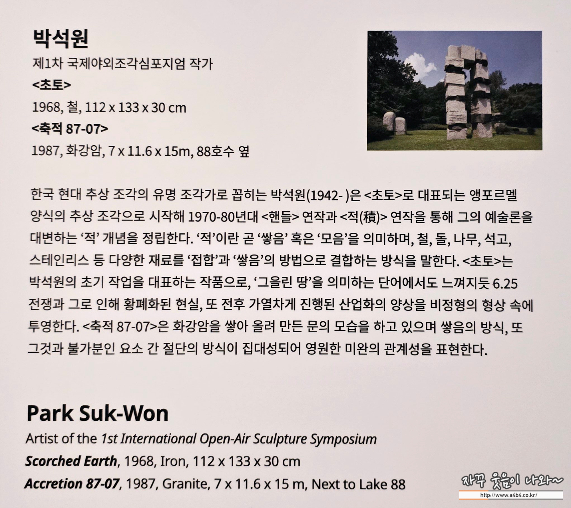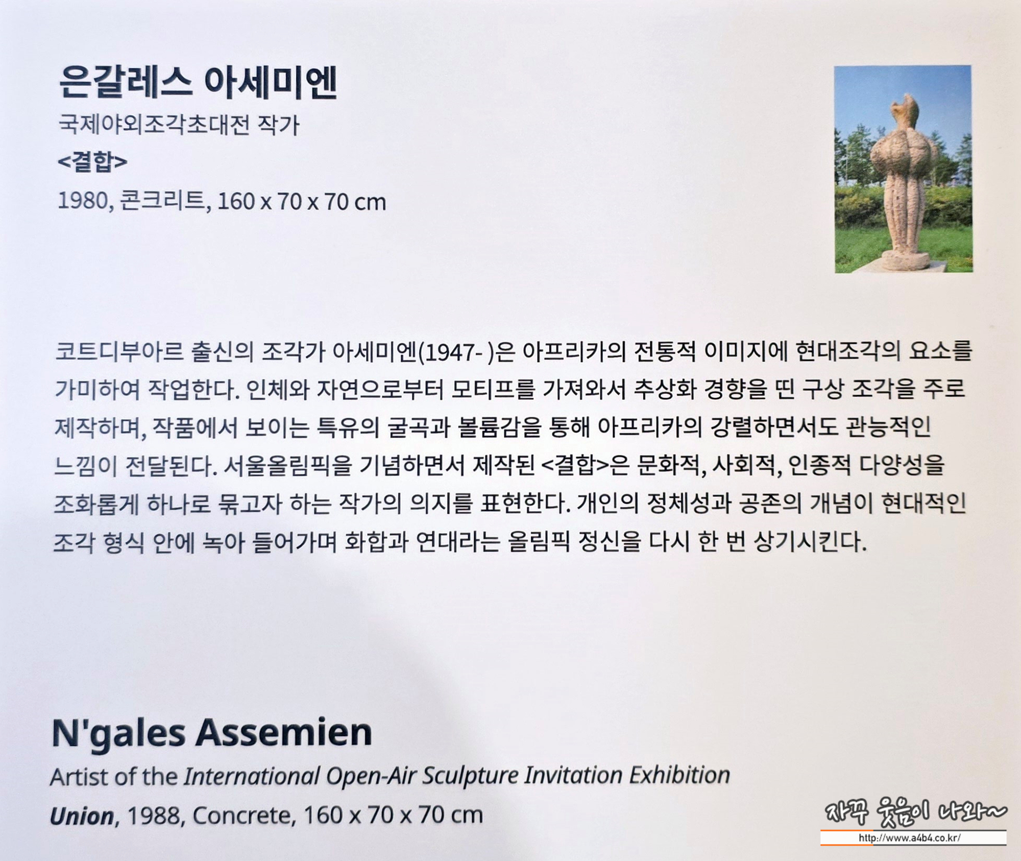 강동 송파구 거주하면서 종종 올림픽공원 산책하시는 분들은 너무나도 쉽게 무심결에 지나치게 되는 수많은 조각품들이 이런 이야기를 가지고 있다는 것을 다시 한 번 확인할 수 있는 좋은 기회네요.