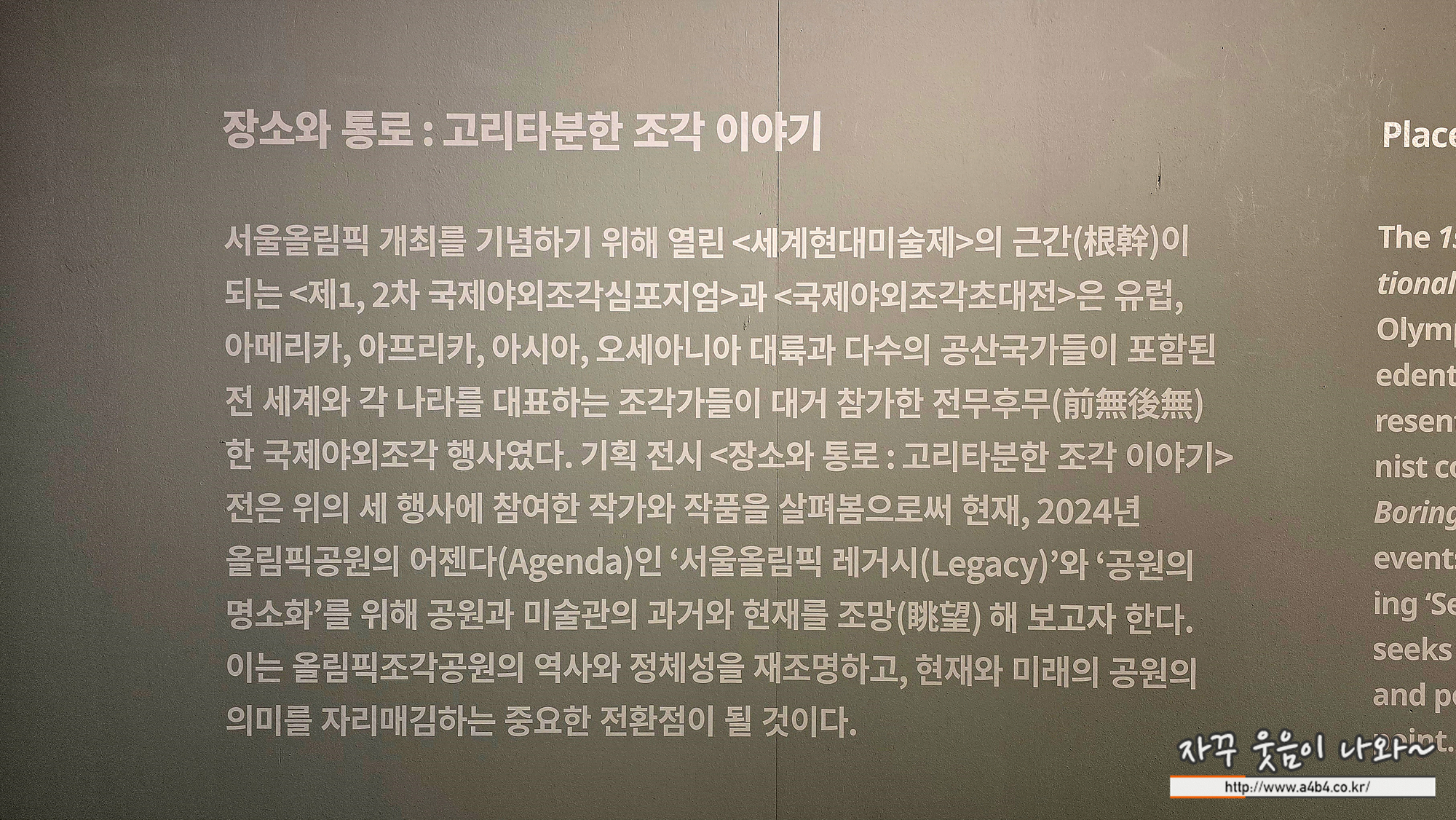 내년 2월까지 올림픽공원 소마 미술관 1관과 2관에서는 조각을 주제로 두 전시회가 열리고 있습니다. 오늘은 1관에서 열리고있는 전시회인 '장소와 통로 고리타분한 조각이야기' 관람후기 입니다.