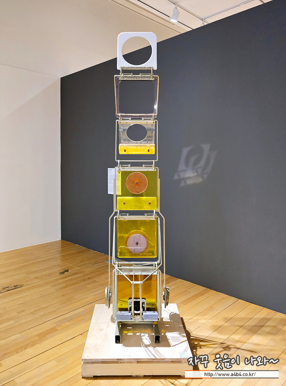 새로운 재료와 기술을 받아들이는 데 거리낌 없었던 그는 철, 플렉시글라스 등의 재료로 모빌과 같은 단순한 구조물부터 기계 시스템을 떠올리게 하는 형상, 거대한 철 구조물에 이르기까지 자신의 독특한 기계 미학을 펼쳤다. <모빌 No. 2>와 <플라밍고> 모두 관람객의 능동적인 참여를 통해 움직임이 달라질 수 있는 키네틱 조각이다. 별다른 장식 없이 간결하게 뻗은 철 구조물들은 실재하는 운동을 통해 변형과 허구, 새로운 의미를 만들어 내면서 관람의 색다른 재미를 부여한다