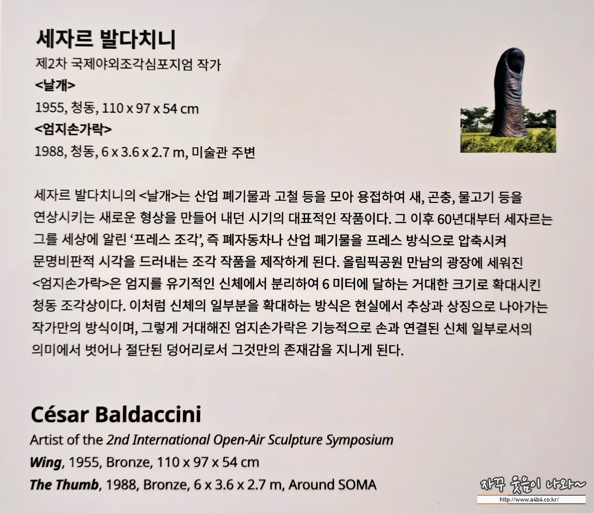 앞에 이어 다시 등장하는 세자르 발다치니의 작품. 올림픽공원에 전시된 조각품 중 원톱을 겨루는 작가중 하나일 듯...