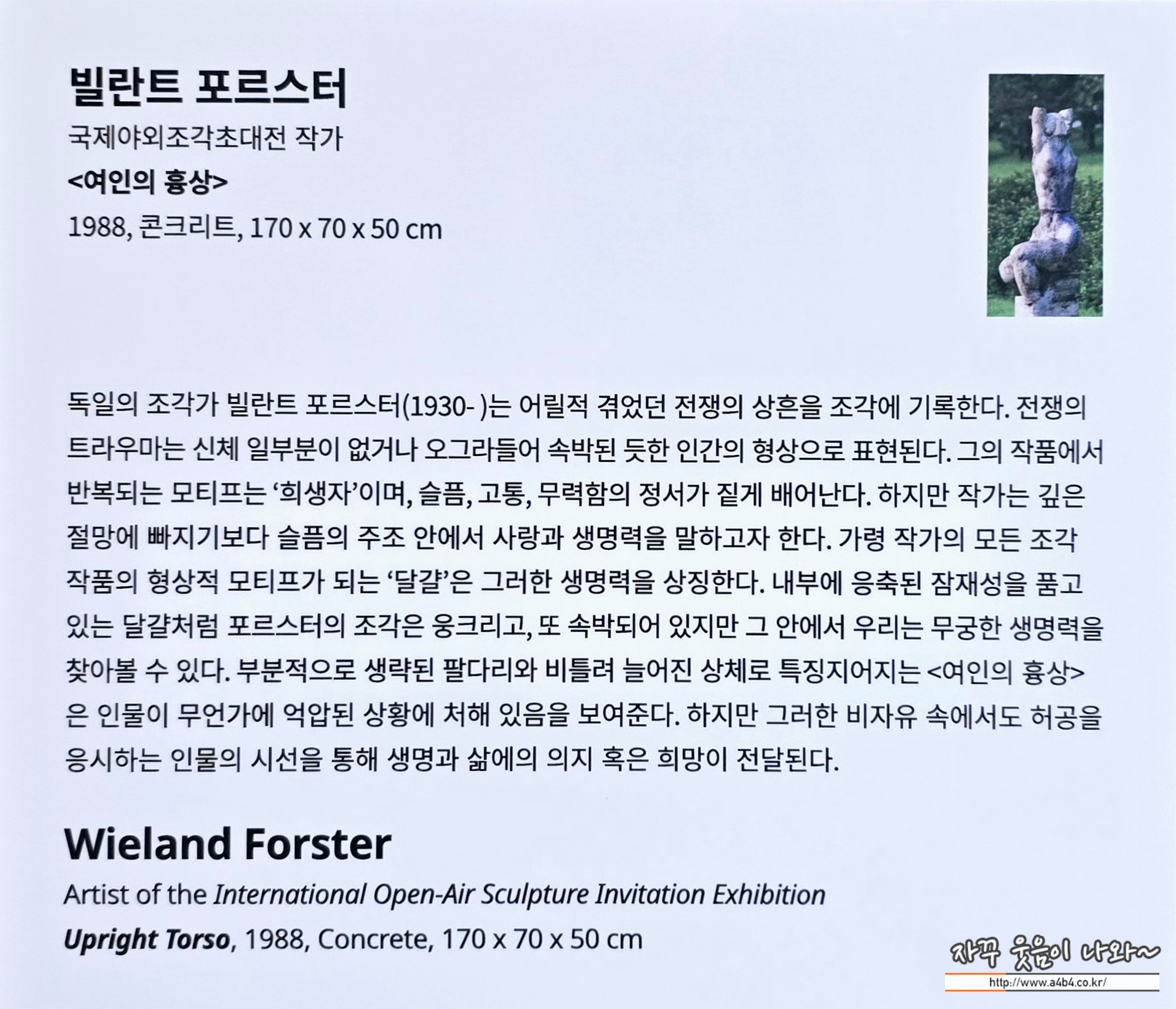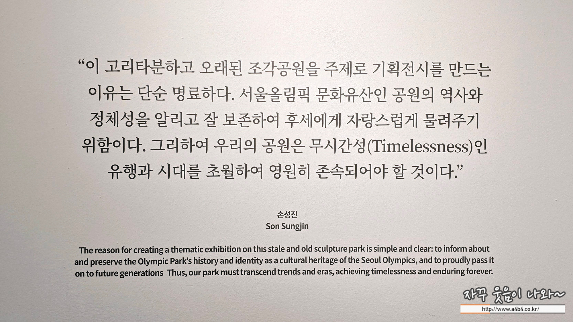 강동 송파구 거주하면서 종종 올림픽공원 산책하시는 분들은 너무나도 쉽게 무심결에 지나치게 되는 수많은 조각품들이 이런 이야기를 가지고 있다는 것을 다시 한 번 확인할 수 있는 좋은 기회네요.