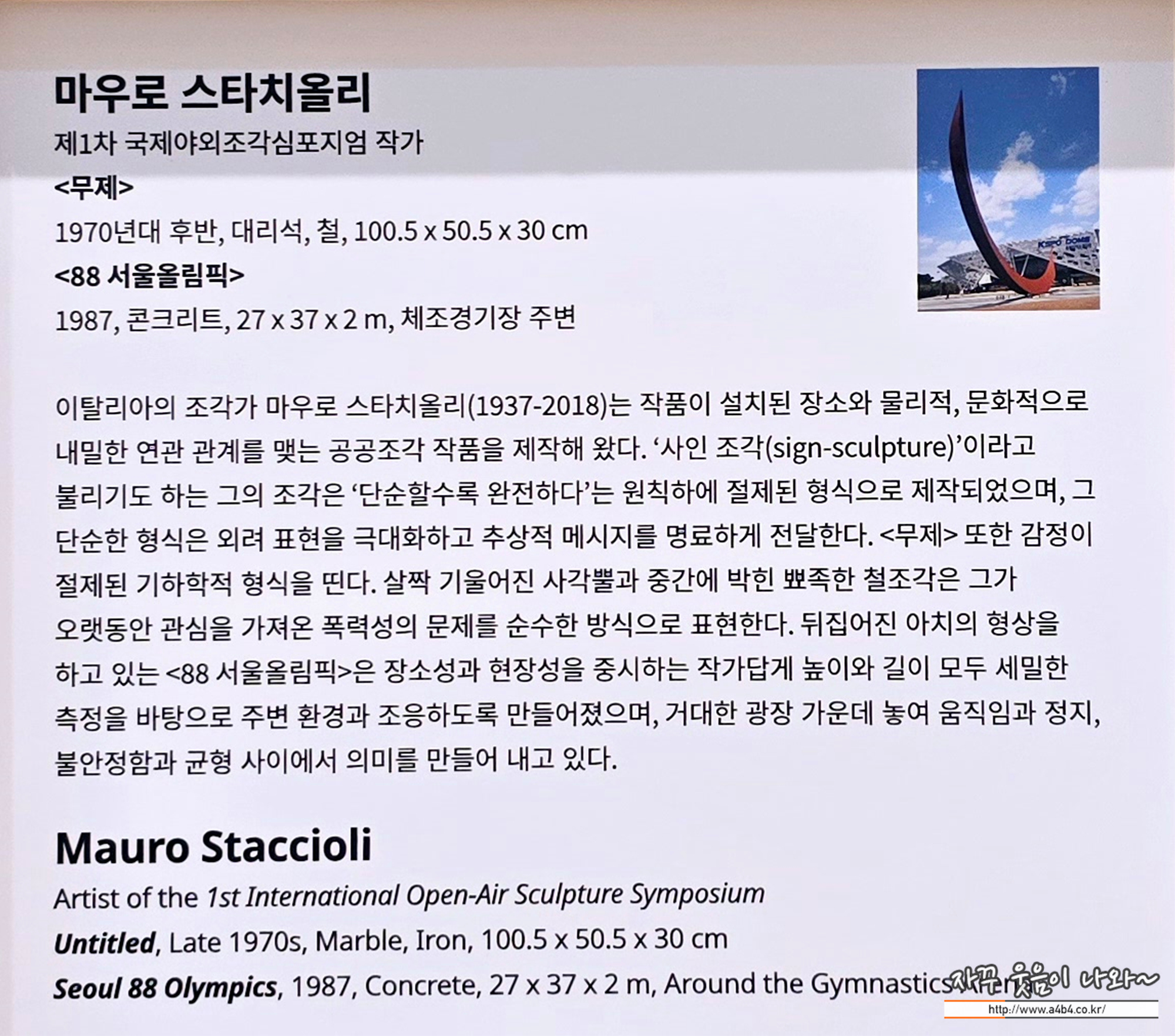이렇게 올림픽공원에 전시된 작품과 관련된 이야기도 만나볼 수 있습니다.
