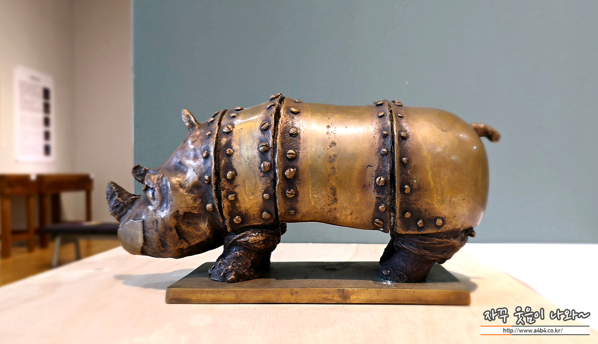 이처럼 작가는 추상적인 모티프를 가지고 오면서노 구체적인 형상과 이미지를 살려 작업하는데, <무제> 역시 철갑을 입은 코뿔소를 사실적으로 형상화한 작품이다. 머리와 몸통을 강조하고 상대적으로 다리와 꼬리는 작게 표현하여 시각적인 재미를 부가했다