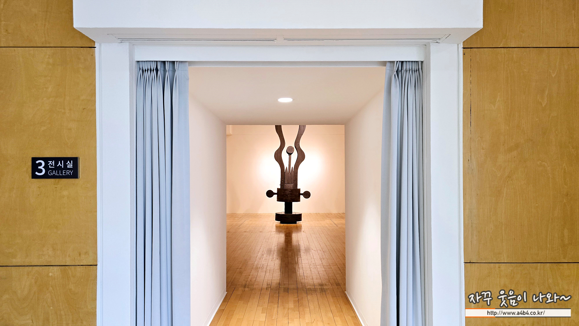 로비에 전시되어있는 작품 감상을 마치고 장소와 통로_고리타분한 조각이야기 제3전시관으로 이동합니다.