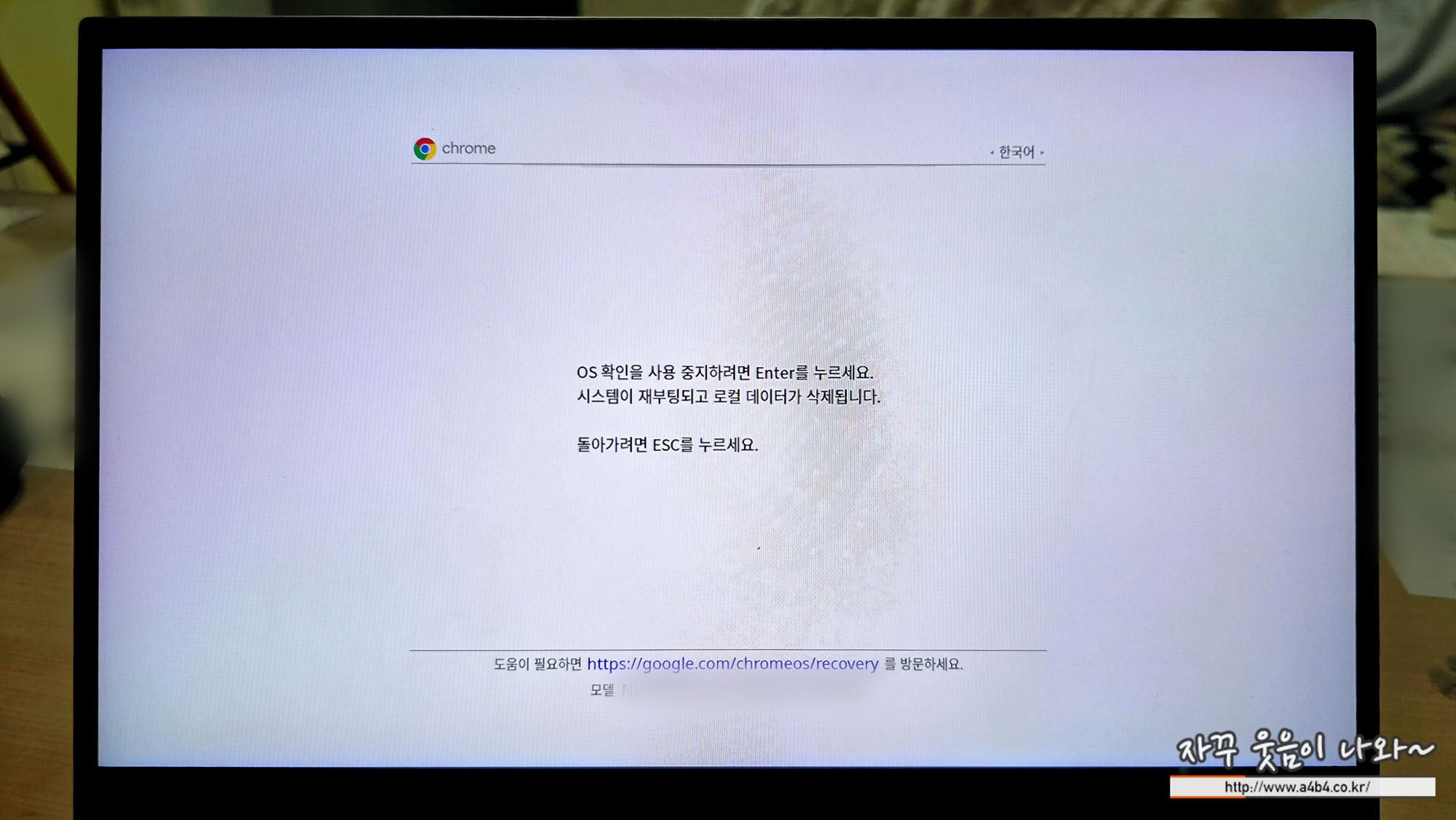 이제 아래 설명을 따라 하세요. 약 5분 전후면 삼성 구글 크롬북 초기화 됩니다.