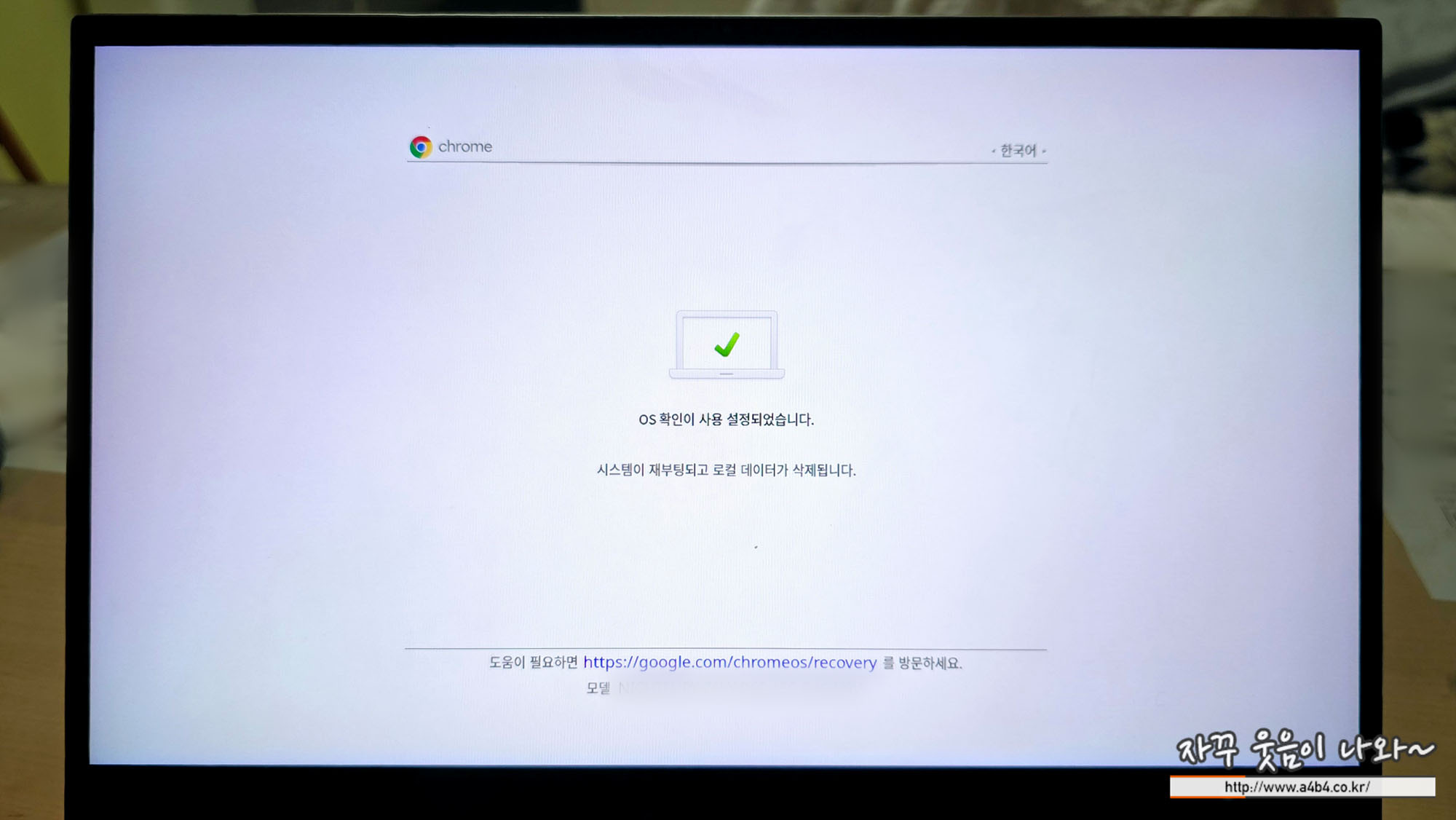 이제 아래 설명을 따라 하세요. 약 5분 전후면 삼성 구글 크롬북 초기화 됩니다.